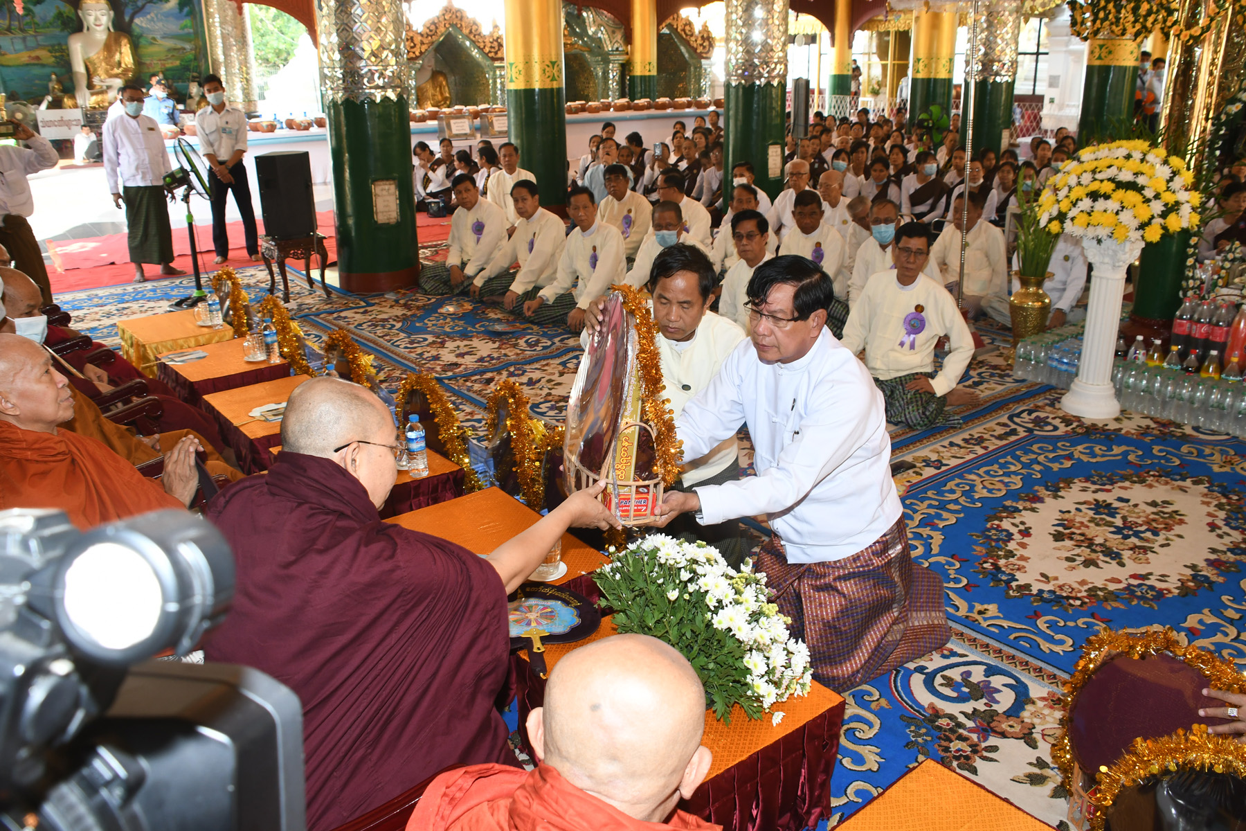 ဆက်လက်၍ တိုင်းဒေသကြီးဝန်ကြီးချုပ်၊ တိုင်းမှူး၊ တိုင်းဒေသကြီးဝန်ကြီးများနှင့် ဂေါပကအဖွဲ့ဝင်များက ဩဝါဒါစရိယဆရာတော်ကြီးများနှင့် ပင့်သံဃာတော်များအား လှူဖွယ်ဝတ္ထုပစ္စည်းများ ဆက်ကပ်ကြသည်။