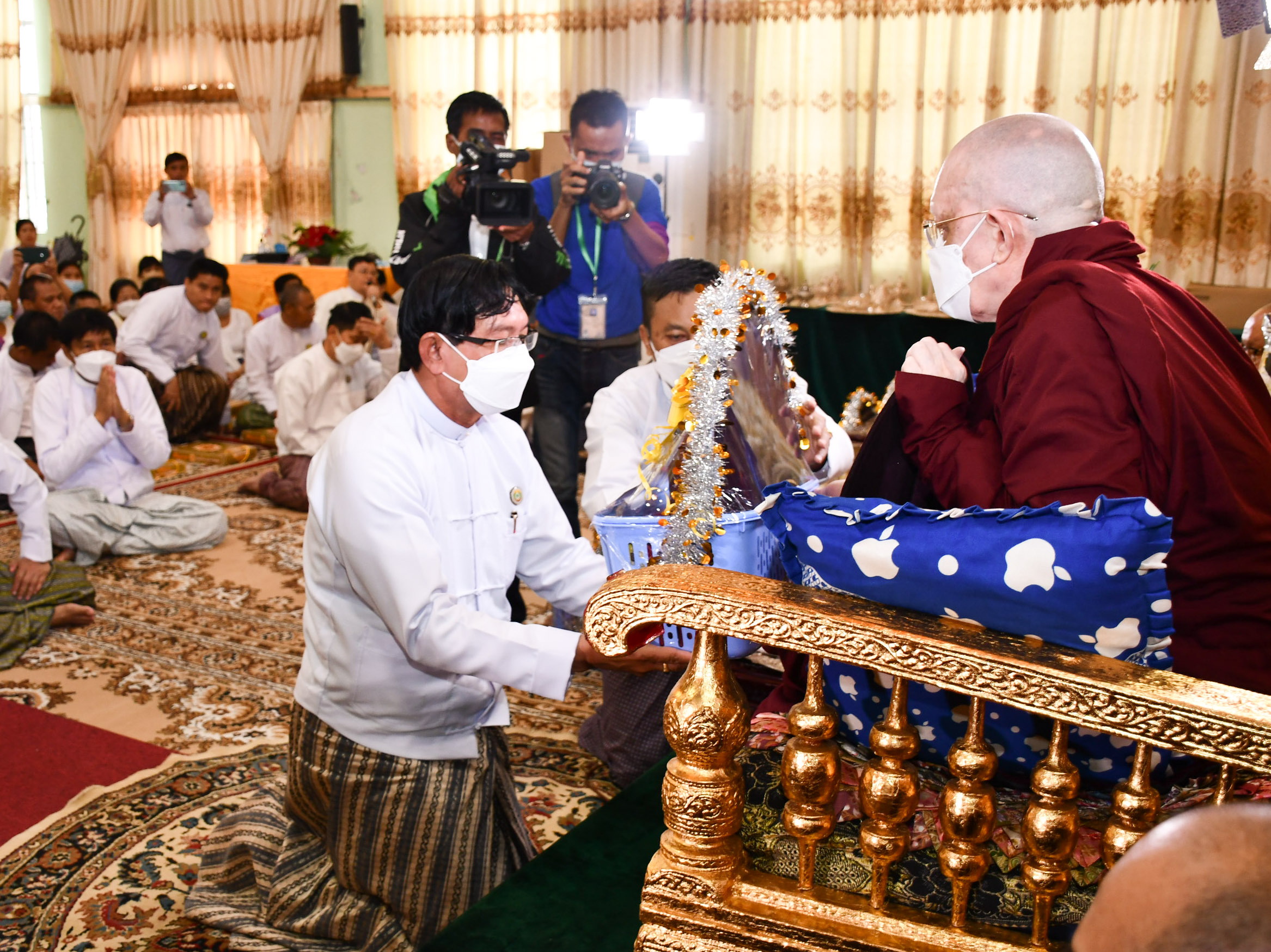 ရန်ကုန်တိုင်းဒေသကြီးဝန်ကြီးချုပ် ဦးစိုးသိန်းသည် တိုင်းဒေသကြီးဝန်ကြီးများနှင့်အတူ ဇူလိုင် ၁၂ ရက် နံနက်ပိုင်းက ရွှေတိဂုံစေတီတော် ရင်ပြင်တော်တောင်ဘက်ရှိ ရှေးဟောင်းဗုဒ္ဓ ရုပ်ပွားတော်များ တန်ဆောင်း၌ ရွှေတိဂုံစေတီတော်မြတ်ကြီး ဝါဆိုသင်္ကန်း ကပ်လှူပူဇော်ပွဲနှင့် ဓမ္မစကြာအခါတော်နေ့ ရေစက်ချအခမ်းအနားသို့ တက်ရောက်ကြည်ညိုသည်။