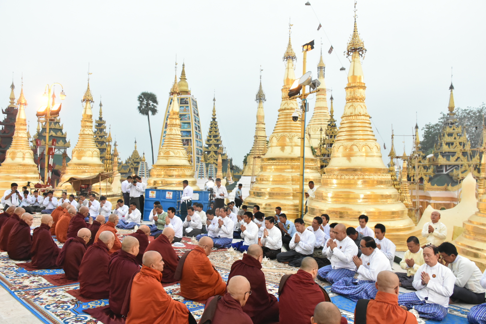 လေးဆူဓာတ်ပုံ ရွှေတိဂုံစေတီတော်မြတ်ကြီး၏ ရတနာစိန်ဖူးတော်၊ ငှက်မြတ်နားတော်၊ ရွှေထီးတော်အား ရောင်တော်ဖွင့်ပြီး၍ ပင့်သံဃာတော် (၁၀၈)ပါးတို့ဖြင့် ဗုဒ္ဓဘိသေက အနေကဇာတင် မဟာမင်္ဂလာနှင့် နှစ်ဆန်း(၁)ရက်နေ့၌ ပြည်ထောင်စုသမ္မတ မြန်မာနိုင်ငံတော်ကြီးအတွင်း အန္တရာယ်ခပ်သိမ်း ကင်းဝေးစေရန် ပရိတ်တော်မြတ် ရွတ်ဖတ်ပူဇော်၍ ကျင်းပခြင်းဖြစ်သည်။