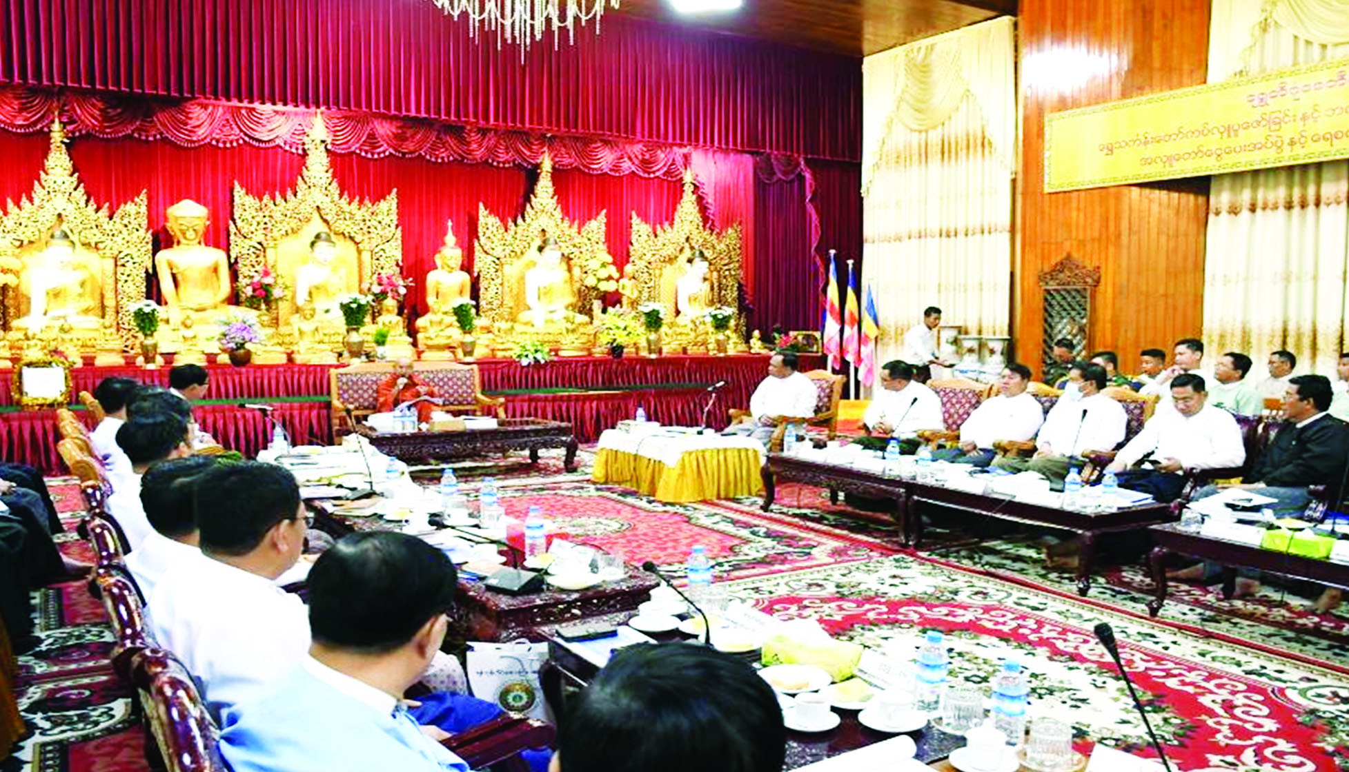 ဦးစွာ တိုင်းဒေသကြီး သံဃနာယကအဖွဲ့ဥက္ကဋ္ဌ ဆရာတော်က အဖွင့်သြဝါဒကထာ မြွက်ကြားသည်။ ထို့နောက် တိုင်းဒေသကြီး ဝန်ကြီးချုပ်နှင့် တိုင်းမှူးတို့က အဖွင့်အမှာစကားများ ပြောကြားကြသည်။ ယင်းနောက် တိုင်းဒေသကြီးအစိုးရအဖွဲ့ အတွင်းရေးမှူးက လုပ်ငန်းဆောင်ရွက်ထားရှိမှုနှင့် ပတ်သက် ၍ ရှင်းလင်းတင်ပြသည်။ ဆက်လက်၍ အပြည်ပြည်ဆိုင်ရာ ထေရဝါဒဗုဒ္ဓသာသနာပြု တက္ကသိုလ် ဒုတိယ ပါမောက္ခချုပ်(စီမံ)က ရွှေတိဂုံစေတီတော်မြတ်ကြီးတွင် ဂိုဏ်းပေါင်းစုံ သံဃာအပါး ၁၁၁၁၁ ပါးတို့ဖြင့် ဗုဒ္ဓါဘိသေက အနေကဇာတင် မဟာမင်္ဂလာအခမ်းအနားနှင့် စုပေါင်းဆွမ်းဆန်စိမ်း လောင်းလှူပွဲ ဆောင်ရွက်မည့်ကိစ္စရပ်များကို ဆွေးနွေးတင်ပြပြီး တက်ရောက်ကြသည့် လုပ်ငန်း ကော်မတီအသီးသီးမှ တာဝန်ရှိသူများက ဆွေးနွေးတင်ပြကြရာ တိုင်းဒေသကြီးဝန်ကြီးချုပ်နှင့် တိုင်းမှူး တို့က ဆွေးနွေးတင်ပြချက်များအပေါ် လိုအပ်သည်များ ဖြည့်ဆည်းဆောင်ရွက်ပေးခဲ့ကြောင်း သတင်း ရရှိသည်။