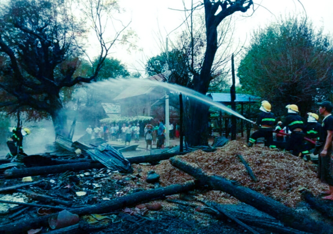 အိမ်ရှင် ဦးအောင်မြင့်ထွန်း (၃၉ နှစ်) ၏ နေအိမ် မီးဖိုမီးကြွင်းမီးကျန်မှတစ်ဆင့် မီးပွားလွှင့်စင်၍ နွားစာတဲ ထန်းရွက်မိုးသို့ မီးကူးစက်ကာ မီးလောင်မှုဖြစ်ပွားခဲ့ခြင်းဖြစ်ပြီး မီးလောင်မှုကြောင့် အိမ်ရှင် ဦးအောင်မြင့်ထွန်း၏ သွပ်မိုး၊ ထရံကာ၊ အုတ်ခင်းနှစ်ထပ်နေအိမ်တစ်လုံး၊ ထန်းရွက်မိုး မြေစိုက် နွားစာတဲ တစ်လုံး၊ ဆိုင်ကယ်တစ်စီး၊ ဆန်နှစ်တင်းနှင့် ဦးကျော်နိုင်ထွန်း၏ သွပ်မိုး ထရံကာ မြေစိုက်နှစ်ထပ နေအိမ်တစ်လုံး၊ ထန်းရွက်မိုး မြေစိုက် နွားစာတဲတစ်လုံး၊ နွားစာစင်းစက်တစ်လုံး၊ ရေစုပ်စက်တစ်လုံး၊ စပါး(၃၀) တင်း၊ ဆန် (၃) တင်း၊ ပဲနီ (၃) တင်း၊ မြေပဲ (၈) တင်း၊ ကြက်သွန်ဖြူ (၂၅ ) ပိသာ၊ မြေပဲဆီ ပိဿာ (၂၀) ခန့် မီးလောင်ဆုံးရှုံးခဲ့ပြီး လူနှင့်တိရစ္ဆာန်ထိခိုက်မှုမရှိကြောင်း သိရသည်။