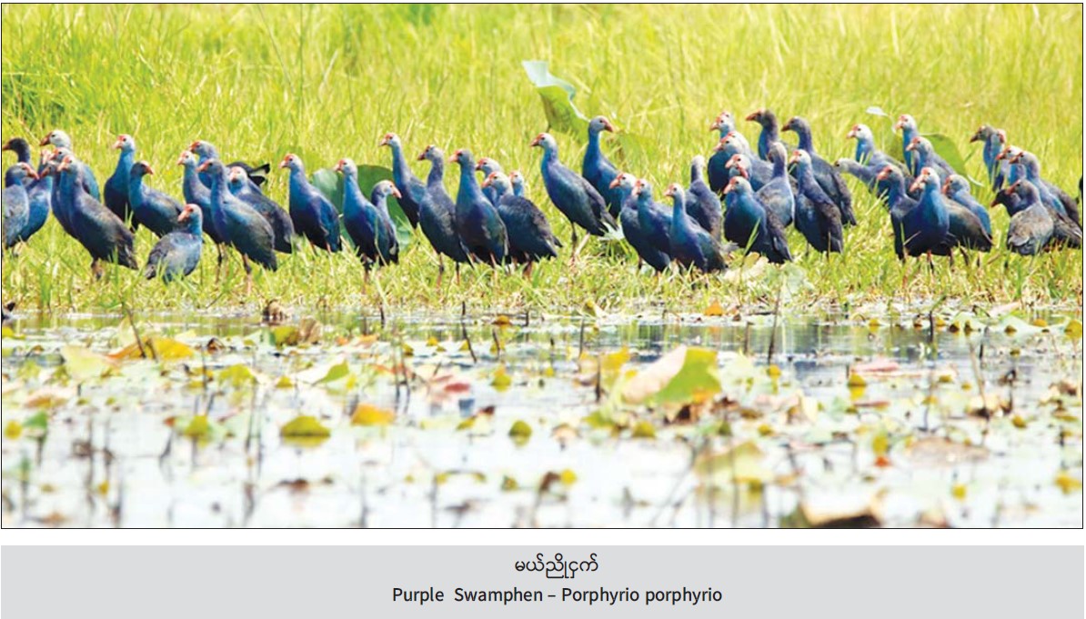 “အင်းထဲကို လာရောက်ကျက်စားတဲ့ ငှက်မျိုးစိတ်ကတော့ ၁၈၅ မျိုး၊ ငှက်ကောင်ရေ ၃၀၀၀၀ နဲ့အထက်ရှိတယ်။ ဒီထဲမှာ မျိုးသုဉ်းဖို့ အန္တရာယ်ရှိတဲ့ငှက်မျိုးစိတ် ကြိုးကြာ (Sarus Crane-VU)၊ ငှက်ကြီးဝန်ပို (Spot- billed Pelican- NT)၊ ခရုစုပ်ခေါင်းမည်း (Black- headed Ibis- NT)၊ ငှက်ကျား(Painted Stork-NT)၊ ဥပန်း(Oriental Darter - NT)၊ လင်းယုန်(Greater spotted Eagle- NT )၊ မြစ်တွေး (River Tern - NT)၊ ဂေါ့ဒွစ် (Black-tailed God-NT)၊ စာဘုန်းကြီး (Asian Golden Weaver – EN) ကိုးမျိုးနဲ့ ဆောင်းခိုငှက်မှတ်တမ်းသစ် (New record) ဒေါင်းလန်းခြေထောက်(White- headed Stilt)၊ ငှက်နှုတ်သီးလန် (Pied Avocent)၊ စင်ရော် (Pallas's Gull)၊ စင်ရော် (Heuglin's Gull)၊ မြစ်တွေး (Caspian Tern)၊ (Red- Breasted Mergansar)၊ (Northern Shoveler)၊ (Short- tailed Shearwater)၊ ကြိုးကြာခေါင်းမည်း(Common Crane) တွေကို မှတ်တမ်းတင်ထားရှိပါတယ်။ ဒါကြောင့် စနစ်တကျ ထိန်းသိမ်းစောင့်ရှောက်ဖို့ လိုအပ်တဲ့အတွက် ကျွန်မတို့ဌာနအနေနဲ့ ထိန်းသိမ်းရေးလုပ်ငန်း၊ သုတေသနလုပ်ငန်းတွေ ဆောင်ရွက်ရသလို ပတ်ဝန်းကျင်ကျေးရွာတွေကို အင်းကပေးတဲ့ ဂေဟစနစ်ကို နားလည်ထိန်းသိမ်း နိုင်အောင်လည်း အသိပညာပေးရပါတယ်” ဟု အုပ်ချုပ်ရေးမှူးက ပြောပြသည်။