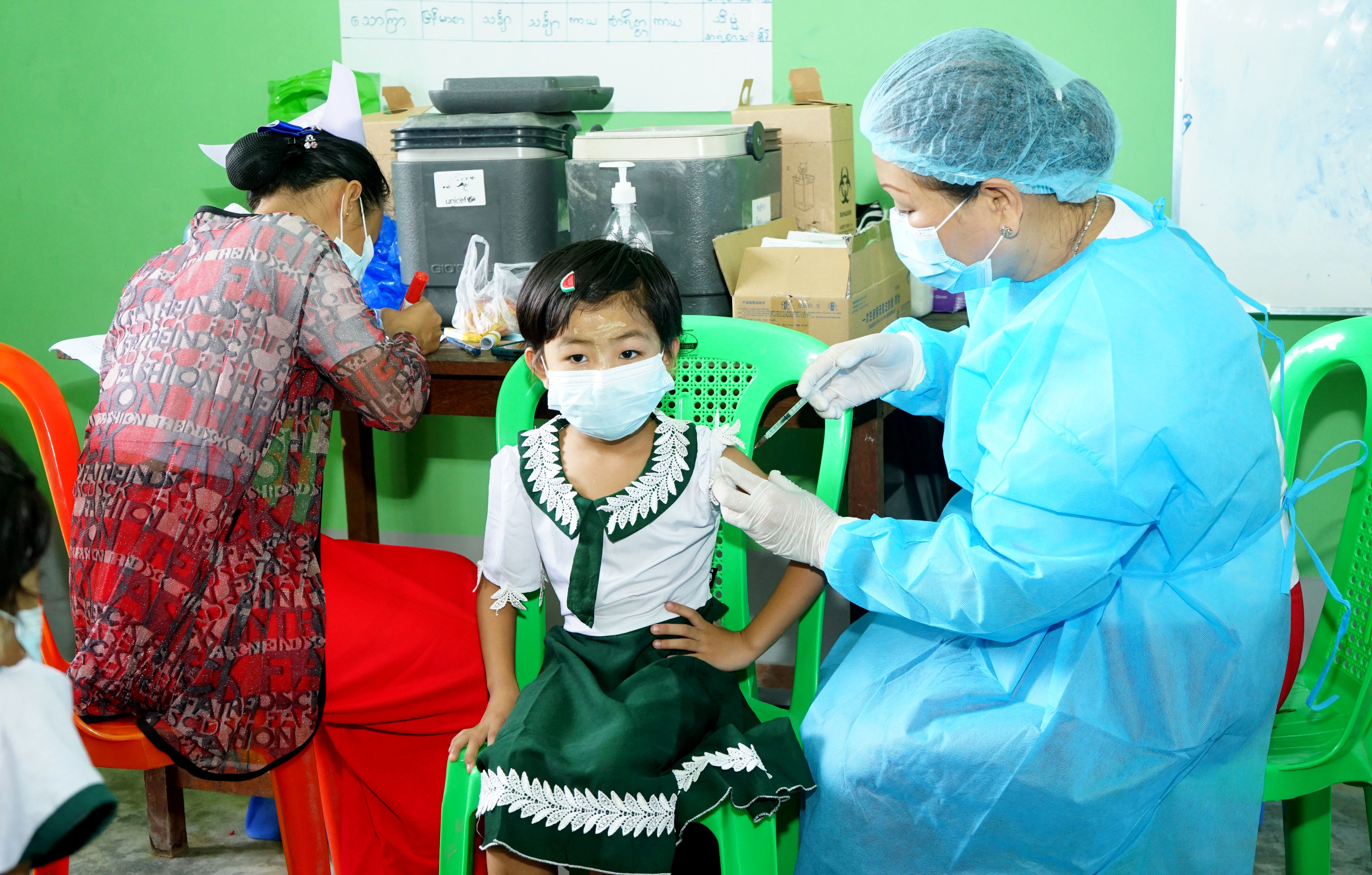 ရခိုင်ပြည်နယ်၊ မောင်တောခရိုင်၊ မောင်တောမြို့၌ အခြေခံပညာကျောင်းများရှိ အသက်(၅)နှစ် နှင့် (၁၂)ကြားရှိ ကျောင်းသားကျောင်းသူများအား (ဒုတိယ)အကြိမ်အဖြစ် ကိုဗစ်-၁၉ ကာကွယ်ဆေးထိုးနှံပေးခြင်းကို ယမန်နေ့ နံနက်ပိုင်းက သတ်မှတ်ကျောင်းစုရပ်နေရာများတွင် ကျန်းမာရေးဝန်ထမ်းများက ထိုးနှံပေးလျက်ရှိကြောင်း သိရသည်။