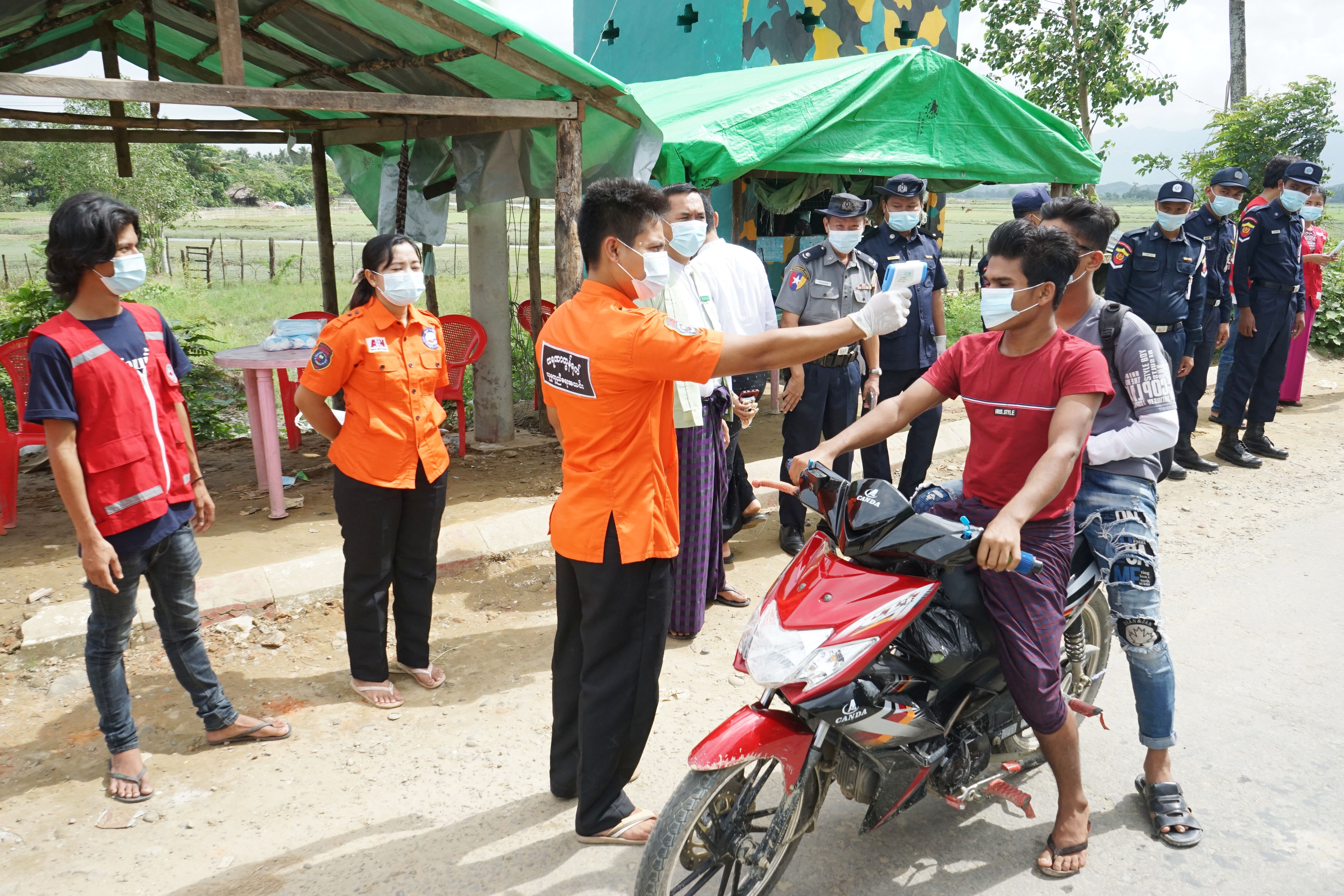 ရခိုင်ပြည်နယ်၊ မောင်တောမြို့၌ ကိုဗစ်-၁၉ ရောဂါ ကာကွယ်၊ ထိန်းချုပ်နိုင်ရေးအတွက် အသိပညာပေးလုပ်ငန်းများ ဆောင်ရွက် ကို ဇွန် ၂၇ ရက်နေ့ နံနက်ပိုင်းမှ စ၍ က မြို့အဝင်အထွက် ဂိတ်တွင် လုပ်ဆောင်လျက်ရှိကြောင်း သိရသည်။