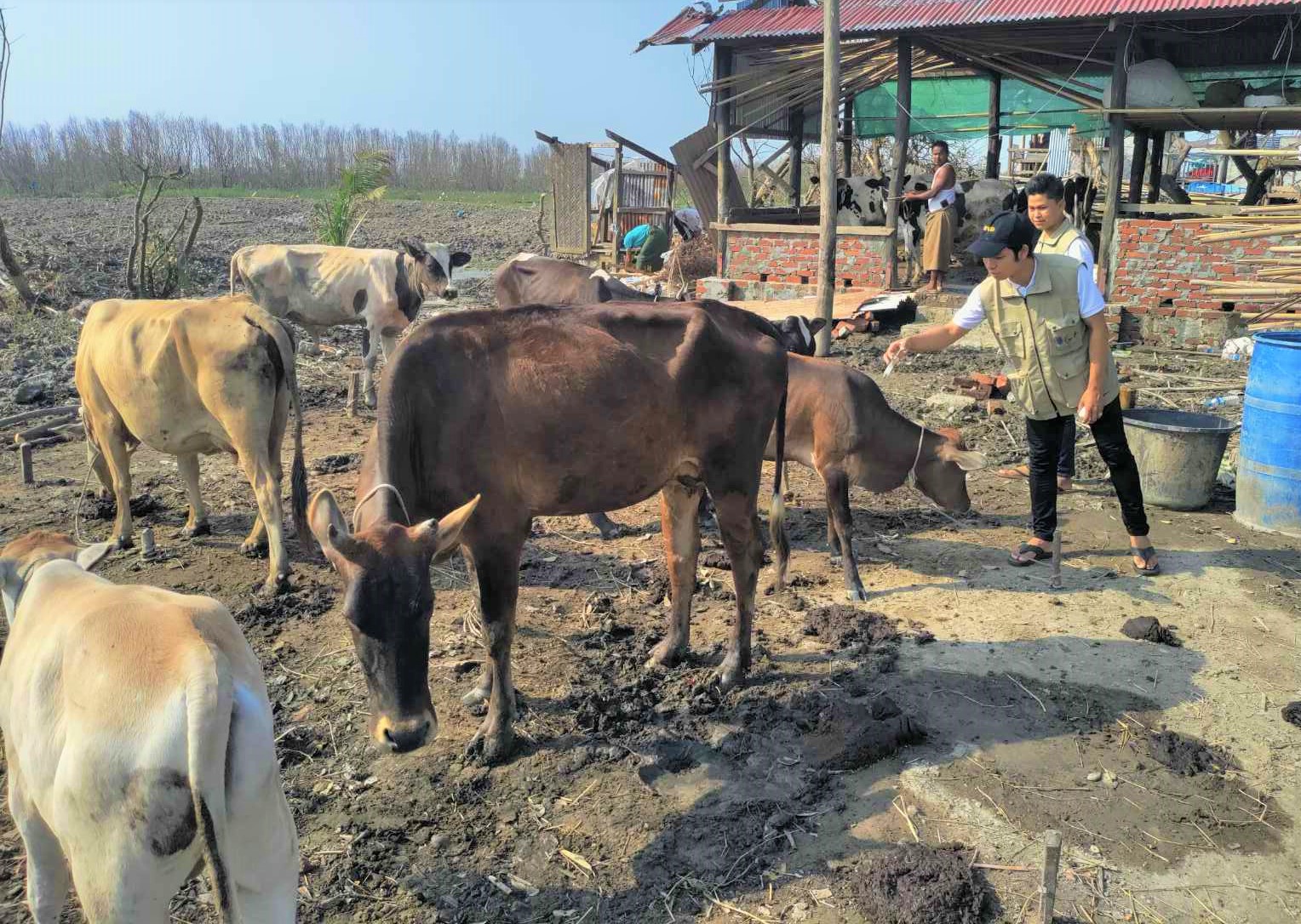 “ရခိုင်ပြည်နယ်ထဲက စစ်တွေအပါအဝင် မြို့နယ်တွေမှာရှိတဲ့ ကျွဲ/နွား တိရစ္ဆာန်တွေကို ကာကွယ်ဆေးထိုးနှံခြင်းနဲ့ ကုသခြင်းလုပ်ငန်းကို ဒီနေ့ကစပြီး နေ့စဉ်အရေးပေါ် တုံ့ပြန်ရေးအဖွဲ့တွေက ဆောင်ရွက်နေတယ်။ တိရစ္ဆာန်တွေမှာ ထိခိုက်ဒဏ်ရာနဲ့ ဝမ်းလျော ဖြစ်တာများတယ်။ ရေငန်ဝင်ထားတဲ့အတွက် တိရစ္ဆာန်တွေဝမ်း ပျက်ဝမ်းလျောဖြစ်တာပါ။ မုန်တိုင်းအတွင်းမှာ ကိုယ်ဝန်ရှိတဲ့ကျွဲ/နွားတိရစ္ဆာန်တွေ သားပျက်သားလျော ဖြစ်တာရှိတယ်။ ပြီးတော့ အဖြစ်များတာ တစ်ခုက လည်ချောင်းကွဲရောဂါပါ။ ဒီအတွက် ချောင်းကွဲကာကွယ်ဆေးကိုထ ိုးနှံပေးနေပါတယ်။ စစ်တွေ၊ ပေါက်တော၊ ဘူးသီးတောင်၊ မင်းပြား၊ မြောက်ဦး၊ ပုဏ္ဏားကျွန်း၊ ရသေ့တောင်၊ ကျောက်တော်၊ မြေပုံမြို့နယ်တွေမှာ တစ်ပြိုင်နက်တည်း ကာကွယ်ကုသရေးလုပ်ငန်းကို ဆောင်ရွက်သွားဖို့ရှိပါတယ်။” ဟု မွေးမြူရေးနှင့်ကုသရေးဦးစီးဌာန ဒုတိယညွှန်ကြားရေးမှူးချုပ် ဒေါက်တာတိုးမင်းထွန်းက ပြောသည်။