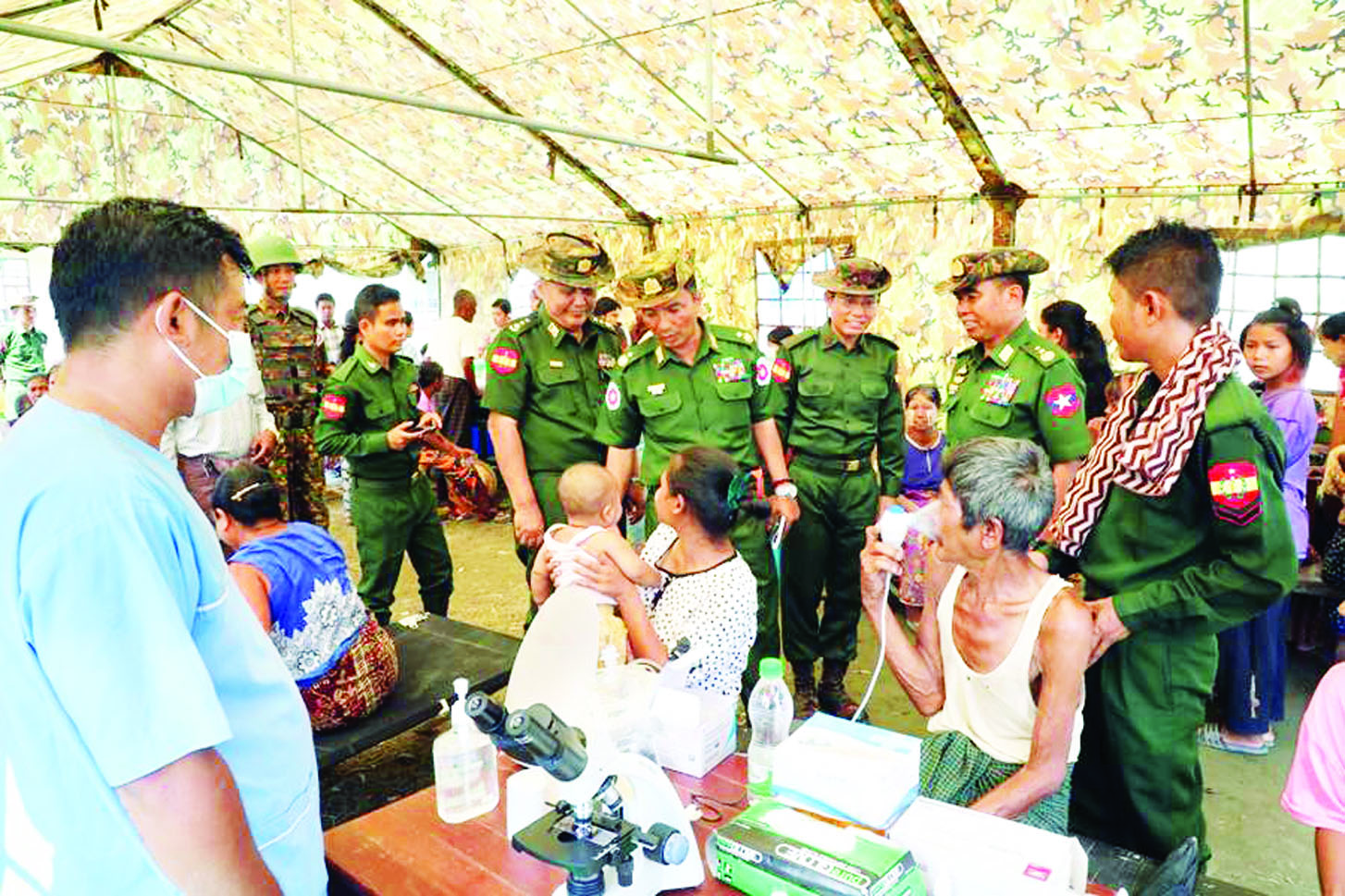 ထို့ပြင် ကာကွယ်ရေးဝန်ကြီးဌာန ဆေးဝန်ထမ်း ညွှန်ကြားရေးမှူးရုံးမှ သမားတော်များ၊ ပါရဂူများ၊ ဆေးမှူးများ၊ သူနာပြုများပါဝင်သည့် အထူး ဆေးကုသရေးအဖွဲ့က စစ်တွေမြို့နယ်အတွင်း ရပ်ကွက်/ ကျေးရွာများတွင် မုန်တိုင်းသင့်ဒေသခံ ပြည်သူများအား အဖျားရောဂါ၊ သွေးတိုးရောဂါ၊ ဝမ်းရောဂါ၊ နှလုံးရောဂါ၊ ဆီးချိုရောဂါ၊ အရိုး/အကြော ရောဂါများ၊ ကလေးရောဂါနှင့် အခြားအထွေထွေ ရောဂါတို့နှင့် ပတ်သက်၍ လိုအပ်သည့် ဆေးဝါးကုသမှုများ ဆက်လက်ဆောင်ရွက် ပေးလျက်ရှိပြီး ရပ်ကွက်/ကျေးရွာများအတွင်းရှိ လူနေအိမ်ခြံဝင်း အတွင်း/အပြင်နေရာများ၊ စာသင်ကျောင်းနှင့် ဘုန်းတော်ကြီးကျောင်းဝင်းနေရာများတွင် ခြင်များခိုအောင်းမှုမရှိစေရေးနှင့် ခြင်မှတစ်ဆင့် ဖြစ်ပွားတတ်သော သွေးလွန်တုပ်ကွေးရောဂါ မဖြစ်ပွားစေရေးတို့အတွက် ခြင်ဆေး ဖျန်းခြင်းများ ဆောင်ရွက်ပေးလျက် ရှိသည်။ ယင်းသို့ ဆောင်ရွက်နေမှုများကို ဒုတိယ ဗိုလ်ချုပ်ကြီး ဖုန်းမြတ်နှင့် တိုင်းမှူးတို့က သွားရောက် ကြည့်ရှုပြီး ဒေသခံပြည်သူများ၏ ကျန်းမာရေး အခြေအနေ များကို ရင်းရင်းနှီးနှီး မေးမြန်းအားပေး စကားပြောကြားကာ လိုအပ်သည်များ ညှိနှိုင်းဆောင်ရွက် ပေးသည်။