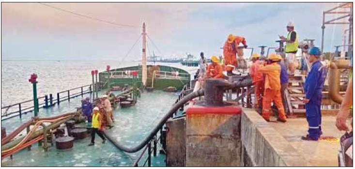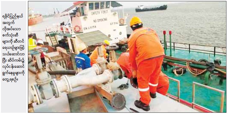မေ ၁၆ ရက်တွင် MT ဇမ္ဗူတန်ဆောင်ဆီတင် ရေယာဉ်ဖြင့် ပရီမီယံဒီဇယ်ဆီ ဂါလန် ၂၀၀၀၀၀ ကို သယ်ယူပို့ဆောင်ပေးခဲ့ရာ စစ်တွေမြို့ရွှေမင်းဂံ ဆိပ်ကမ်းသို့ဆိုက်ရောက်၍ စက်သုံးဆီချယူခြင်း နှင့် ဖြန့်ဖြူးခြင်းလုပ်ငန်းများကို ဆောင်ရွက်နေပြီဖြစ်ပြီး သီလဝါမှပေးပို့သော ဆီတင်ယာဉ် ဘောက်ဆာတစ်စီးမှာလည်း စစ်တွေမြို့သို့ ဝင်ရောက်ပြီ ဖြစ်ပါသည်။ ထို့အပြင် ထပ်မံ၍ ရန်ကုန်မြို့ သီလဝါဆိပ်ကမ်းဒေသမှ MT Khine Khine Phyo-33၊ MT Khine Khine Phyo-34 ကမ်းရိုးတန်းသွား စက်သုံးဆီ Tanker များဖြင့် ဒီဇယ်ဆီ ဂါလန် ၂၅၀၀၀၀ ၊ ဓာတ်ဆီ 92 RON ဂါလန် ၂၀၀၀၀၀ တို့ကိုလည်း ထပ်မံဖြည့်တင်း သယ်ယူပို့ဆောင်ပေးလျက်ရှိရာ မကြာမီရက်အတွင်း စစ်တွေမြို့သို့ ရောက်ရှိမည်ဖြစ်သဖြင့် စက်သုံးဆီများကို ပြတ်လပ်မှုမရှိစေဘဲ စဉ်ဆက်မပြတ် ဖြန့်ဖြူးပေးသွားနိုင်မည်ဖြစ်ပါသည်။