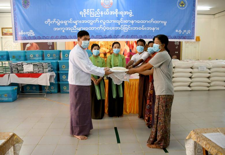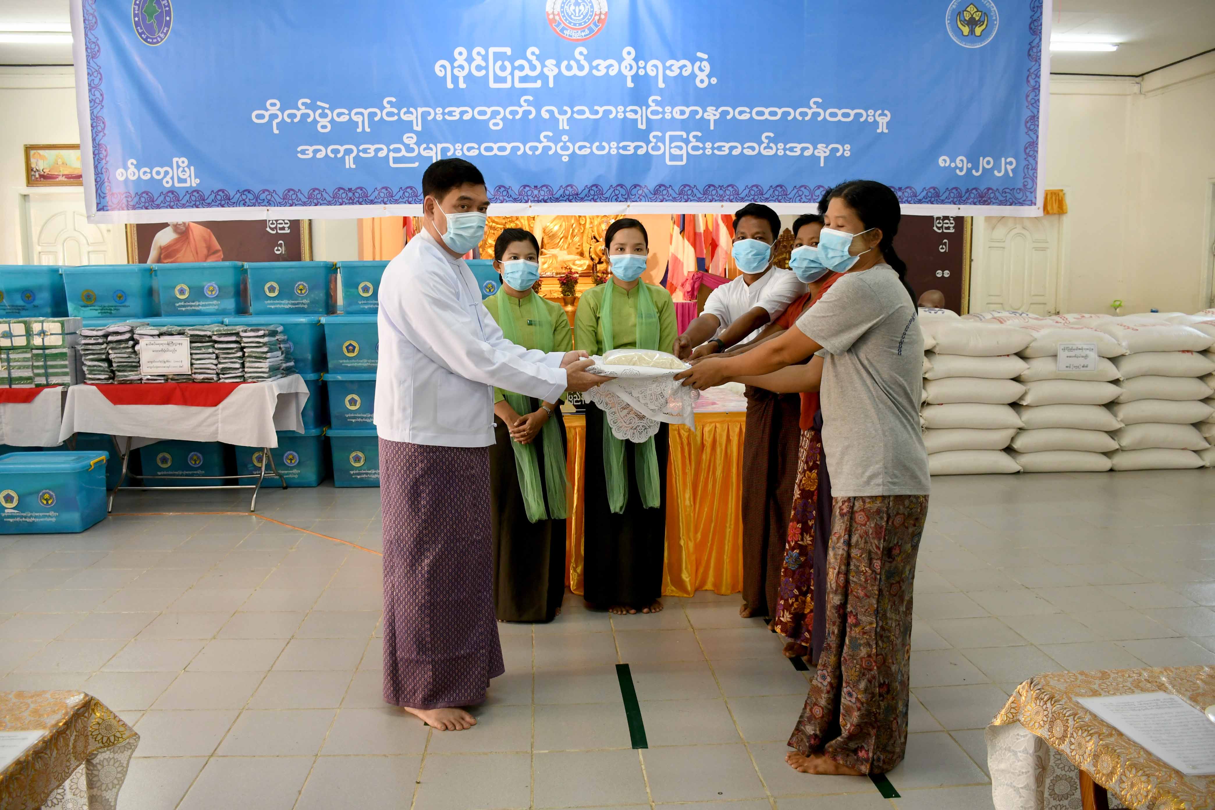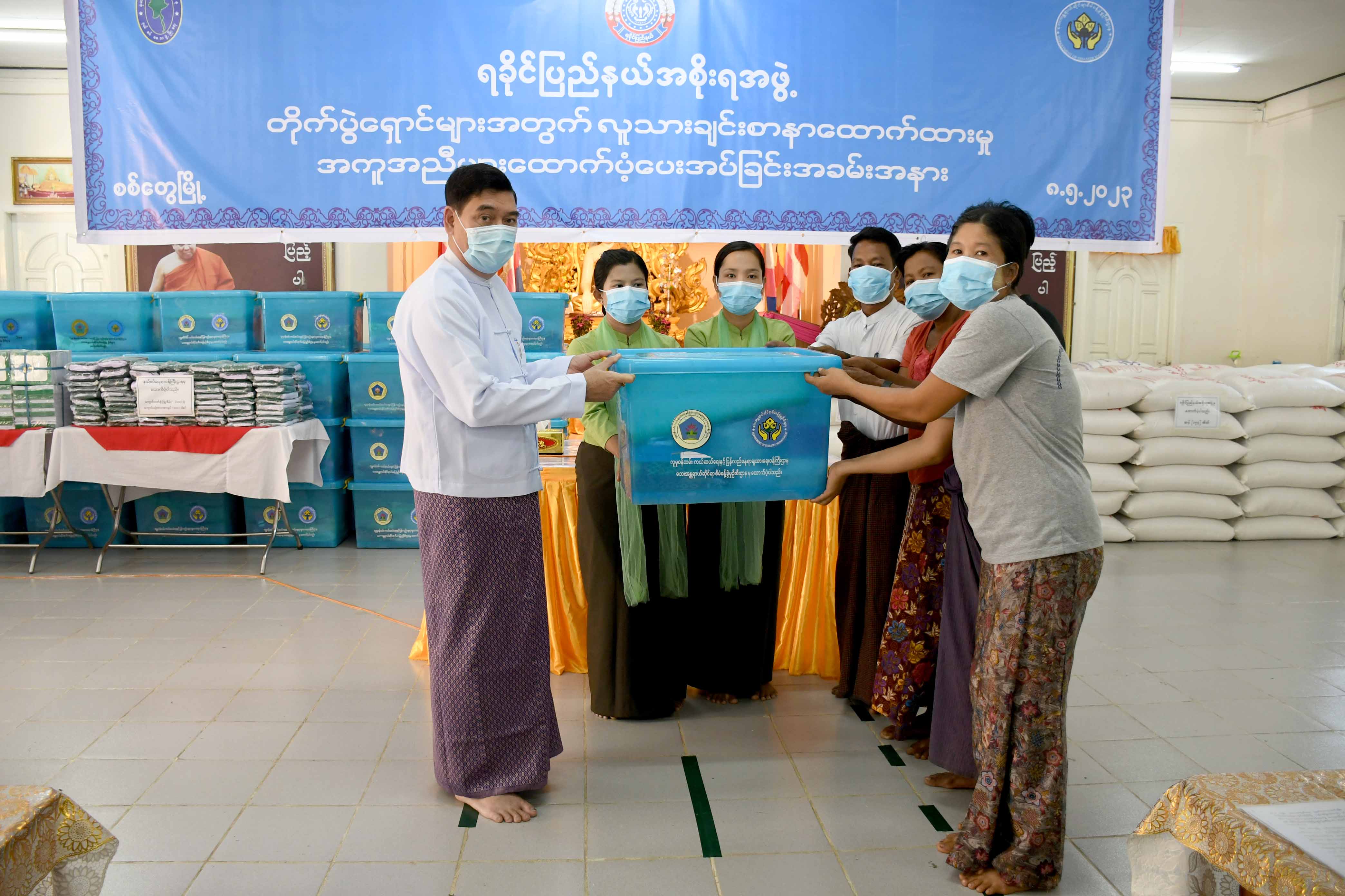 နေရပ်စွန့်ခွာ ပြည်သူများအတွက် လူသားချင်းစာနာထောက်ထားမှု အကူအညီ ထောက်ပံ့ပေးအပ်ခြင်းအခမ်းအနားတွင် အလိုတော်ပြည့် ဘုန်းတော်ကြီးကျောင်းတိုက်ရှိ အိမ်ထောင်စု (၇၁)စု၊ လူဦးရေ (၂၅၀)ဦးနှင့် ဗုဒ္ဓေါမော်ကျောင်းတိုက်ရှိ အိမ်ထောင်စု (၅၉)စု၊ လူဦးရေ (၂၄၁)ဦး စုစုပေါင်း အိမ်ထောင်စု (၁၃၀)စု၊ လူဦးရေ (၄၉၁)ဦးအတွက် ရခိုင်ပြည်နယ် အစိုးရအဖွဲ့၊ နယ်စပ်ရေးရာဝန်ကြီးဌာန လက်အောက်ရှိ ဒေသဖွံ့ဖြိုးမှုကြီးကြပ်ရေးရုံးနှင့် လူမှုဝန်ထမ်း၊ ကယ်ဆယ်ရေးနှင့် ပြန်လည်နေရာချထားရေးဝန်ကြီးဌာန လက်အောက်ရှိ ဘေးအန္တရာယ်ဆိုင်ရာ စီမံခန့်ခွဲမှုဦးစီးဌာနတို့က ဆန် (၁၅၄)အိတ်၊ ကျောင်းစိမ်းဝတ်စုံ (၁၀၀)စုံ၊ ဗလာစာအုပ်ဒါဇင် (၁၀၀)နှင့် ပစ္စည်း (၁၇)မျိုးပါ Family Kit များကို လူသားချင်းစာနာထောက်ထားမှု အကူအညီအဖြစ် ထောက်ပံ့ပေးအပ်ခြင်းဖြစ်ကြောင်း သိရသည်။