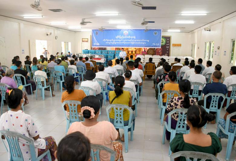 ရခိုင်ပြည်နယ်အတွင်းရှိ နေရပ်စွန့်ခွာပြည်သူများအတွက် လူသားချင်းစာနာထောက်ထားမှု အကူအညီ ထောက်ပံ့ပေးအပ်ခြင်း အခမ်းအနားကို ယနေ့နံနက်ပိုင်းက စစ်တွေမြို့၊ အလိုတော်ပြည့် ဘုန်းတော်ကြီးကျောင်း၊ ဓမ္မာရုံ၌ကျင်းပရာ ရခိုင်ပြည်နယ်ဝန်ကြီးချုပ် ဦးထိန်လင်း၊ ပြည်နယ်အစိုးရ အဖွဲ့ဝင်များ၊ ဌာနဆိုင်ရာတာဝန်ရှိသူများ၊ ရပ်ကွက်အုပ်ချုပ်ရေးမှူးများနှင့် နေရပ်စွန့်ခွာပြည်သူများ တက်ရောက်ကြသည်။