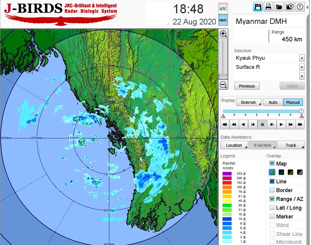 ဘင်္ဂလားပင်လယ်အော်အခြေအနေမှာ ကပ္ပလီပင်လယ်ပြင်နှင့် ဘင်္ဂလားပင်လယ်အော်တောင်ပိုင်းတို့တွင် မုတ်သုံလေ အားကောင်းနေပြီး ကျန်ဘင်္ဂလားပင်လယ်အော်တွင် မုတ်သုံလေ အားအသင့်အတင့် ရှိနေသည်။
