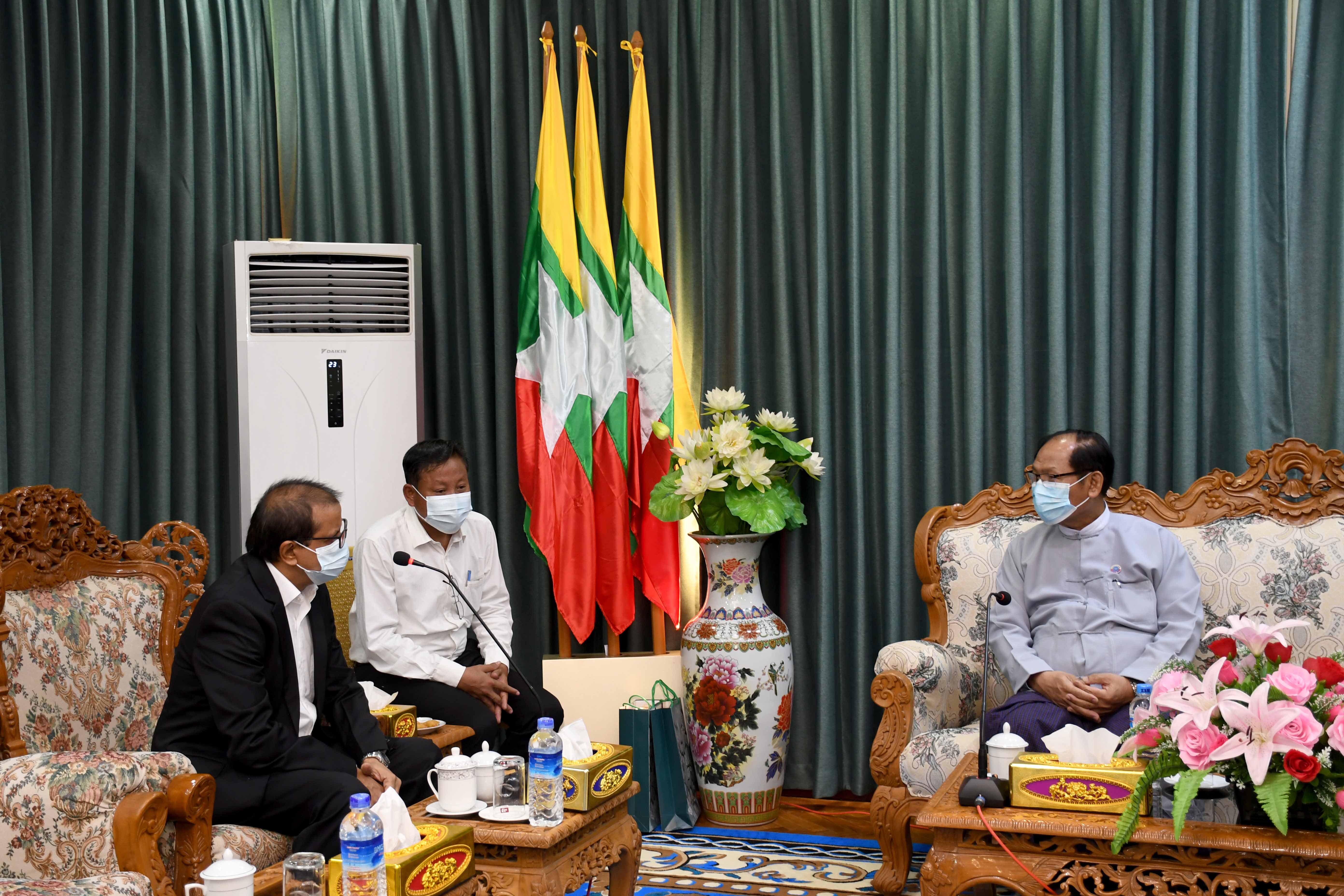 ရခိုင်ပြည်နယ်ဝန်ကြီးချုပ် ဒေါက်တာ အောင်ကျော်မင်းသည် ပြည်နယ်အစိုးရ အဖွဲ့ဝင်များနှင့်အတူ ယနေ့မွန်းလွဲပိုင်းက ပြည်နယ်ဝန်ကြီးချုပ် ဧည့်ခန်းမ၌ အိန္ဒိယ ကောင်စစ်ဝန် Mr .Jay Krishna အား လက်ခံတွေ့ဆုံသည်။