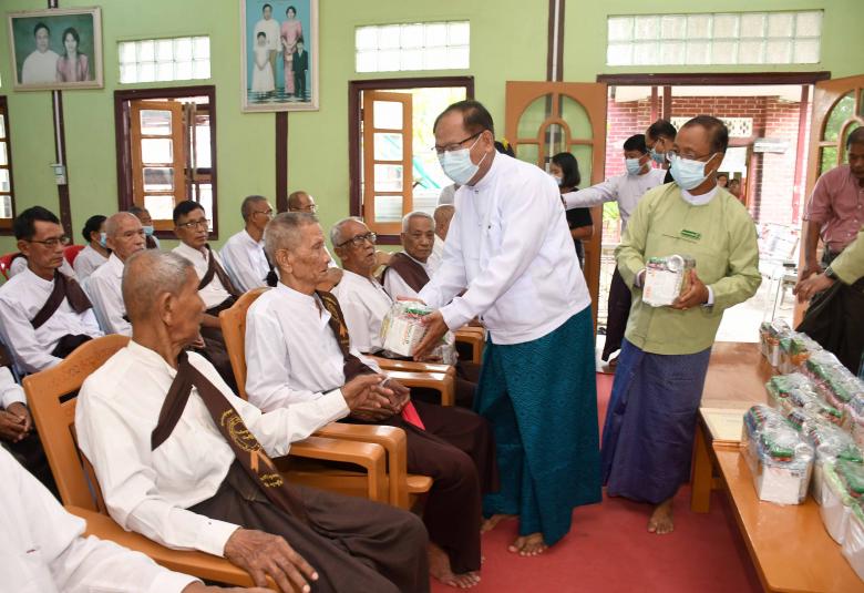 မွန်းလွဲပိုင်းတွင် ပြည်နယ်ဝန်ကြီးချုပ်သည် ရွှေမေတ္တာဘိုးဘွားရိပ်သာသို့ ကြည့်ရှုစစ်ဆေးပြီး အဘိုးအဘွားများအား ဆေးဝါးများနှင့် ထောက်ပံ့ပစ္စည်းများ ပေးအပ်လှူဒါန်းကာ ဘိုးဘွား ရိပ်သာအတွက် ရခိုင်ပြည်နယ်အစိုးရအဖွဲ့မှ လှူဒါန်းသည့် ထောက်ပံ့ငွေကျပ် (၁၀) သိန်း ပေးအပ်လှူဒါန်းသည်။