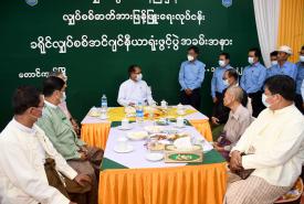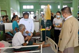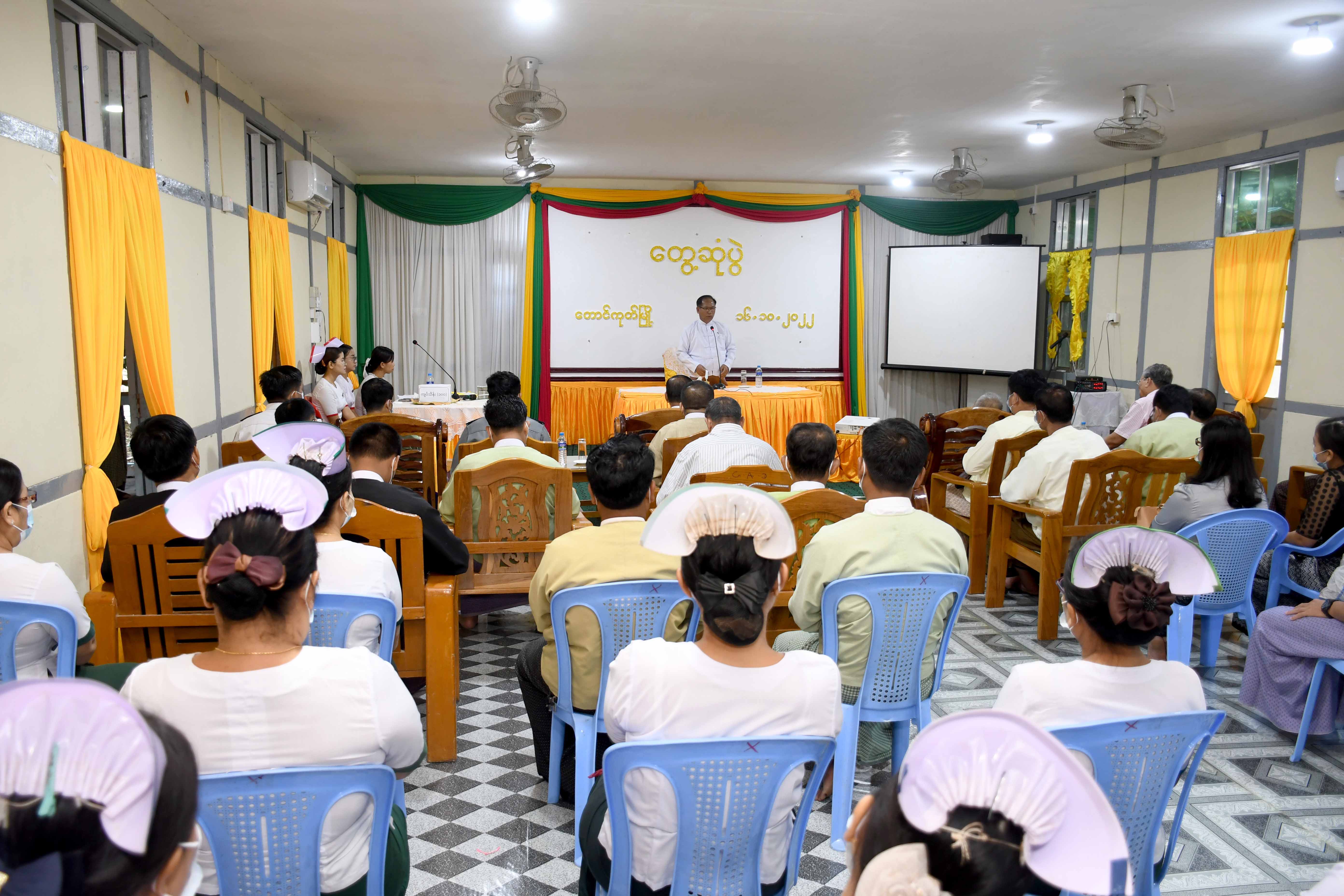 ထို့နောက် ပြည်နယ်ဝန်ကြီးချုပ်နှင့်အဖွဲ့သည် တောင်ကုတ်မြို့၊ ဂူတာရပ်ကွက်၊ အခြေခံပညာ မူလတန်းလွန်ကျောင်းရှေ့ရှိ လမ်းအား အဆင့်မြှင့်တင်ဆောင်ရွက်နိုင်ရေး သွားရောက်ကြည့်ရှုစစ်ဆေးကြပြီး လိုအပ်သည်များကို တာဝန်ရှိသူများနှင့် ပေါင်းစပ်ညှိနှိုင်းပေးကာ မြို့နယ်ကျန်းမာရေးဦးစီးဌာနမှူးရုံး အစည်းအဝေးခန်းမ၌ ဆရာဝန်၊ သူနာပြု၊ ကျန်းမာရေးဝန်ထမ်းများနှင့် တွေ့ဆုံပွဲသို့ တက်ရောက်သည်။ တွေ့ဆုံပွဲတွင် ပြည်နယ်ဝန်ကြီးချုပ်က ပြည်သူများကို ဝန်ဆောင်မှုပေးရာတွင် ပြည်သူများ၏ ရင်ထဲမှာ ကောင်းမွန်သည့် ပုံရိပ်များ အမြဲအမှတ်ရစွဲထင်နိုင်အောင် စေတနာထား ဆောင်ရွက်ပေးကြရန်နှင့် ကောင်းမွန်သည့်မှတ်တမ်းများ ကျန်ရှိနိုင်အောင် ကြိုးစားဆောင်ရွက်ပေးကြရန် ပြောကြားသည်။ ဆက်လက်၍ ပြည်နယ်ဝန်ကြီးချုပ်က ဆေးရုံတည်ဆောက်ရေးလုပ်ငန်းများတွင် အသုံးပြုနိုင်ရန် အတွက်ငွေကျပ်သိန်း(၁၀၀)နှင့် ဝန်ထမ်းများအတွက် ထောက်ပံ့ငွေကျပ်သိန်း (၂၀)တို့အားပေးအပ်ရာ ဆေးရုံကြီးကြပ်မှုကော်မတီနှင့် မြို့နယ်ကျန်းမာရေးဦးစီးဌာနမှူးတို့က လက်ခံရယူကြသည်။ ယင်းနောက် မြို့မိ၊ မြို့ဖအဖွဲ့ဥက္ကဋ္ဌ၊ ဦးကျောက်တောင်က ကျေးဇူးတင်စကား ပြန်လည်ပြောကြားကာ မြို့နယ်ကျန်းမာရေးဦးစီးဌာနမှူးနှင့် တောင်ကုတ်တက္ကသိုလ်ပါမောက္ခချုပ်တို့က မြို့နယ်အတွင်း ကျန်းမာရေးဌာနများနှင့် တက္ကသိုလ်အတွက် လိုအပ်ချက်များကို ရှင်းလင်းတင်ပြကြရာ ပြည်နယ်ဥပဒေချုပ်နှင့် အစိုးရအဖွဲ့အတွင်းရေးမှူးတို့က ဖြည့်စွက်ရှင်းလင်း ဆွေးနွေးတင်ပြကြပြီး ပြည်နယ်ဝန်ကြီးချုပ်က တာဝန်ရှိသူများနှင့် ပေါင်းစပ်ညှိနှိုင်းပေးခဲ့သည်။