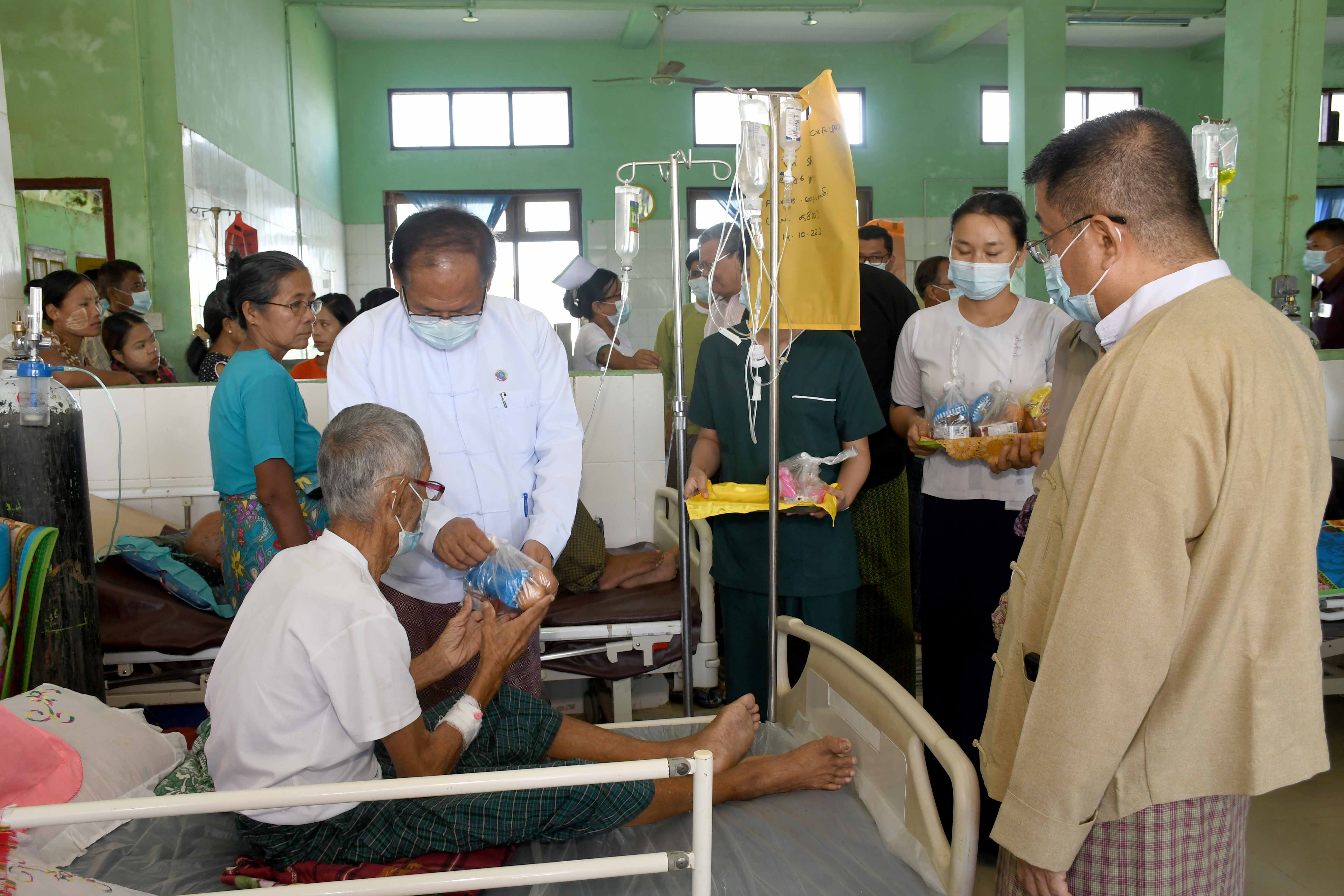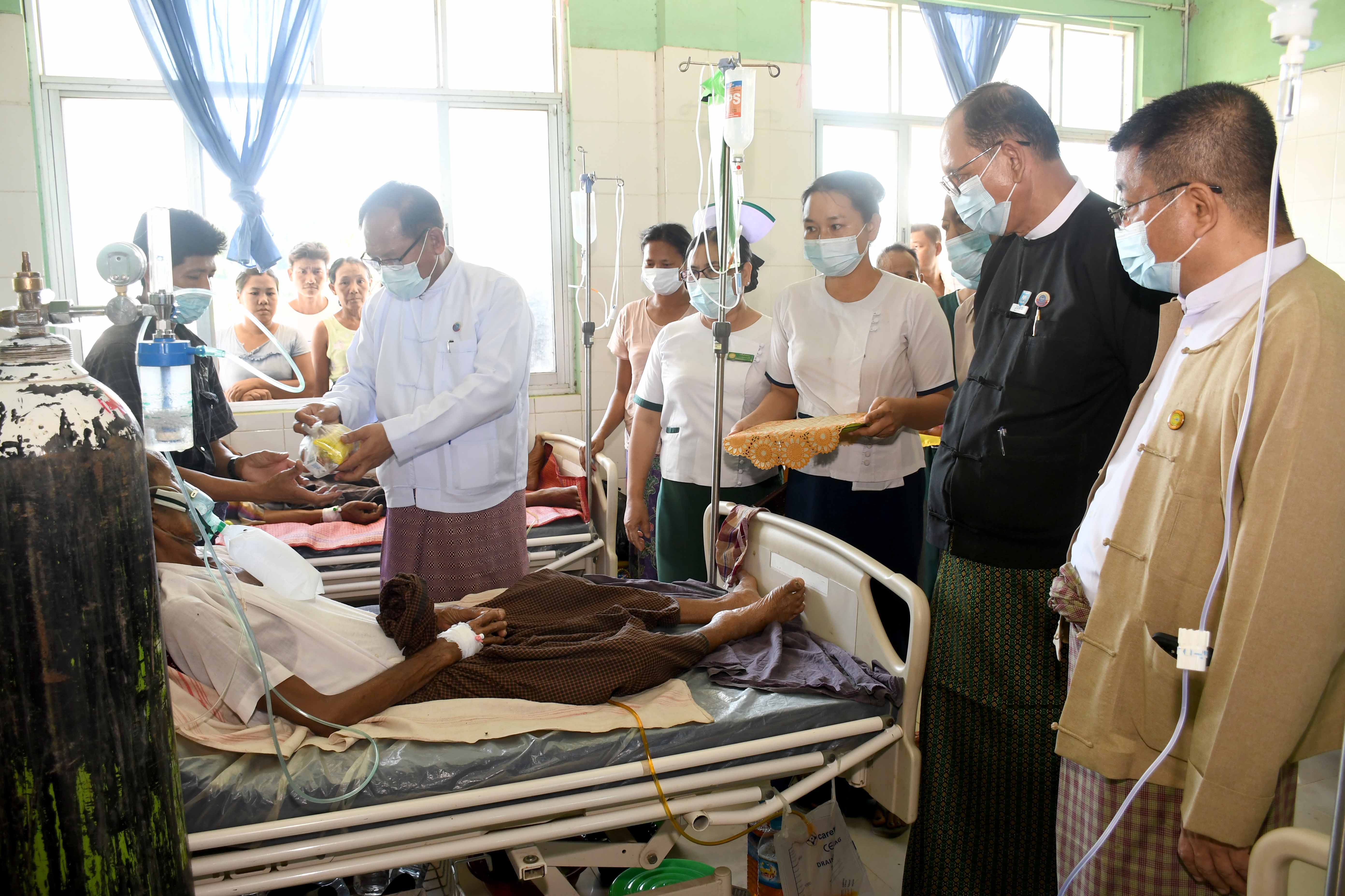 ထို့နောက် ပြည်နယ်ဝန်ကြီးချုပ်နှင့်အဖွဲ့သည် တောင်ကုတ်မြို့၊ ခုတင်(၁၀၀)ဆံ့ပြည်သူ့ဆေးရုံကြီးသို့ သွားရောက်ပြီး ဆေးရုံအတွင်း လှည့်လည်ကြည့်ရှုကာ ဆေးရုံတက်ရောက်ကုသမှု ခံယူနေကြသည့် ဒေသခံပြည်သူများအား လိုက်လံအားပေးစကားပြောကြားပြီး အာဟာရဖြည့်စွက်စာများ ထောက်ပံ့ပေးအပ်ခဲ့ကြသည်။ ယင်းနောက် ပြည်နယ်ဝန်ကြီးချုပ်နှင့်အဖွဲ့သည် အစိုးရစက်မှုလက်မှုသိပံ္ပ (တောင်ကုတ်) ပင်မသုံးထပ်စာသင်ဆောင် တည်ဆောက်နေမှုအား သွားရောက်ကြည့်ရှုစစ်ဆေးကြရာ ကုမ္ပဏီမှ တာဝန်ခံအင်ဂျင်နီယာက ကျောင်းဆောင်ဆောက်လုပ်နေမှုနှင့် ပတ်သက်၍ ရှင်းလင်းတင်ပြပြီး ပြည်နယ်ဝန်ကြီးချုပ်နှင့် တာဝန်ရှိသူများက ကျောင်းဆောင်ဆောက်လုပ်နေမှုအား လှည့်လည်ကြည့်ရှု စစ်ဆေးခဲ့ကြသည်။ ဆက်လက်၍ ပြည်နယ်ဝန်ကြီးချုပ်နှင့်အဖွဲ့သည် တောင်ကုတ်မြို့၊ မြို့ကွက်သစ် ဖော်ထုတ်လျက်ရှိသော နေရာတွင် ခရိုင်အဆင့်ဌာနဆိုင်ရာရုံးများ တည်ဆောက်မည့် မြေနေရာများအား ကြည့်ရှုစစ်ဆေးခဲ့ကြသည်။