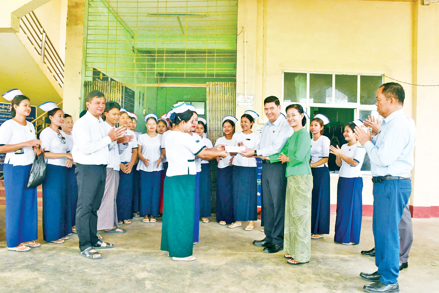 ယင်းနောက် ဈေးတန်းရပ်ကွက် အခြေခံပညာ အထက်တန်းကျောင်းခွဲသို့ သွားရောက်ပြီး ဆရာ ဆရာမများအား ရင်းရင်းနှီးနှီးတွေ့ဆုံနှုတ်ဆက်ကာ ကျောင်းသား ကျောင်းသူများ အေးချမ်းစွာ ပညာသင်ကြားနေမှုကို လှည့်လည်ကြည့်ရှုအားပေး၍ ကျောင်းသား ကျောင်းသူများအား စားသောက်ဖွယ်ရာများ ပေးအပ်ချီးမြှင့်ကြသည်။