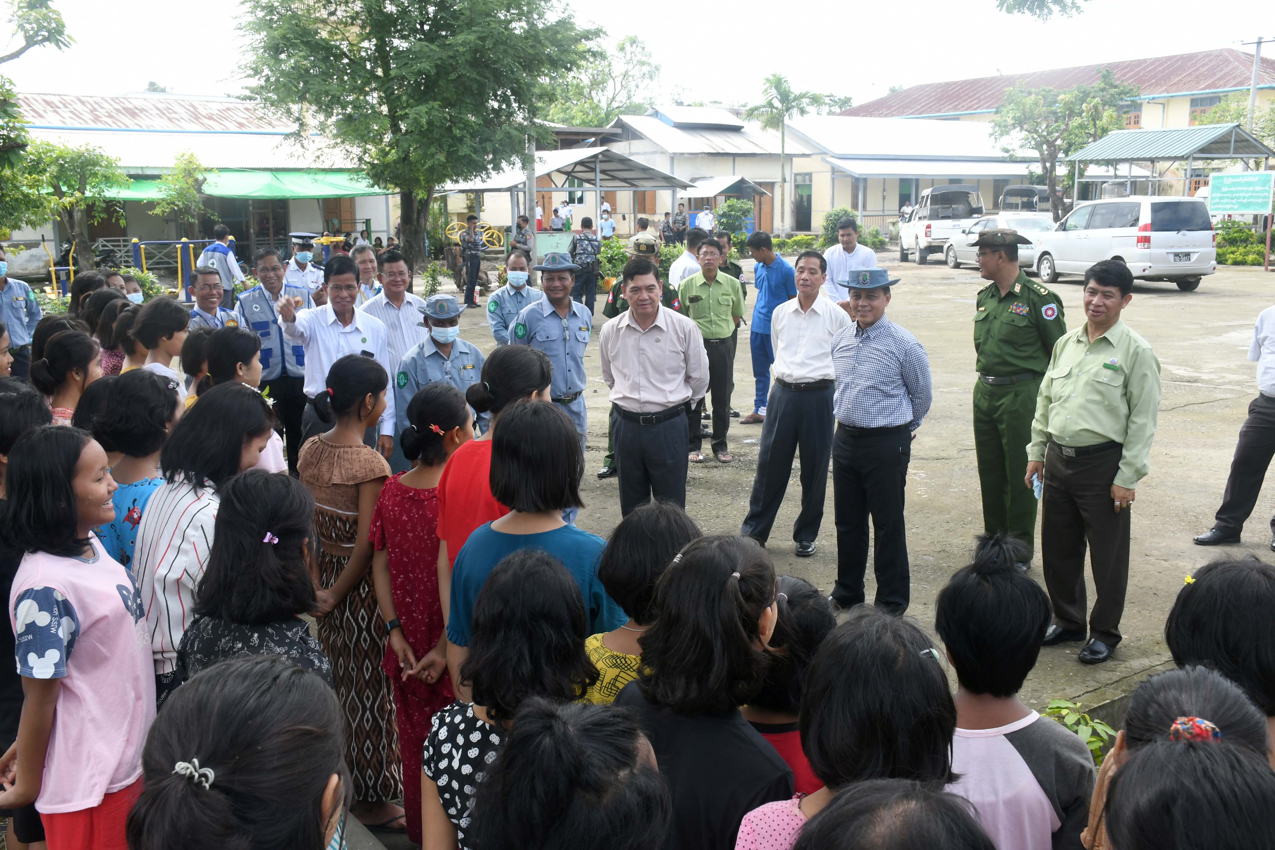 ဆက်လက်၍ ပြည်နယ်ဝန်ကြီးချုပ်နှင့်အဖွဲ့သည် ကျောင်းတိုက်အတွင်း ဌာနဆိုင်ရာများ၊ နယ်မြေခံတပ်မတော်သားများ၊ ရဲတပ်ဖွဲ့ဝင်များနှင့် ဒေသခံပြည်သူများစုပေါင်း သန့်ရှင်းရေးဆောင်ရွက် နေမှုကို သွားရောက်ကြည့်ရှုအားပေးကြပြီး လိုအပ်သည်များကို တာဝန်ရှိသူများအား လမ်းညွှန်မှာကြားခဲ့သည်။