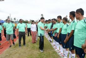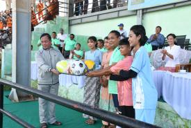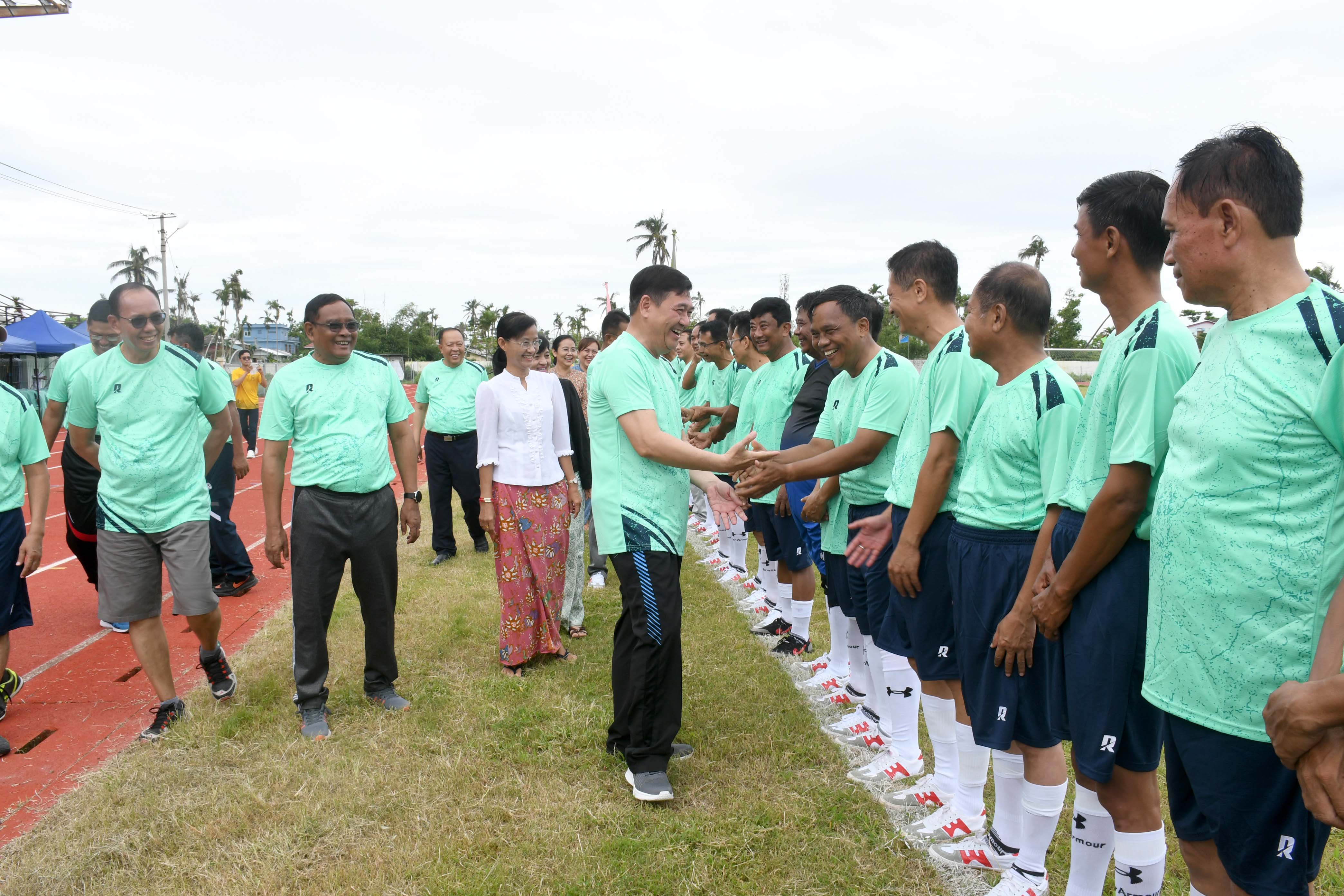 ထို့နောက် ပြည်နယ်ဝန်ကြီးချုပ်နှင့်ဇနီးတို့က အားကစားသမားများအား လိုက်လံနှုတ်ဆက်ကြ ပြီး စစ်တွေတက္ကသိုလ်မှ လှပျိုဖြူများက ပြိုင်ပွဲဝင်အားကစားသမားများအား အောင်သပြေပန်းစည်း များ ပေးအပ်ကာ ချစ်ကြည်ရေးဘောလုံးပြိုင်ပွဲကို စတင်ကျင်းပရာ ပြိုင်ပွဲတွင် စစ်တွေတက္ကသိုလ် အသသင်းက ၅ ဂိုး ၄ ဂိုးဖြင့်အနိုင်ရရှိသွားသည်။