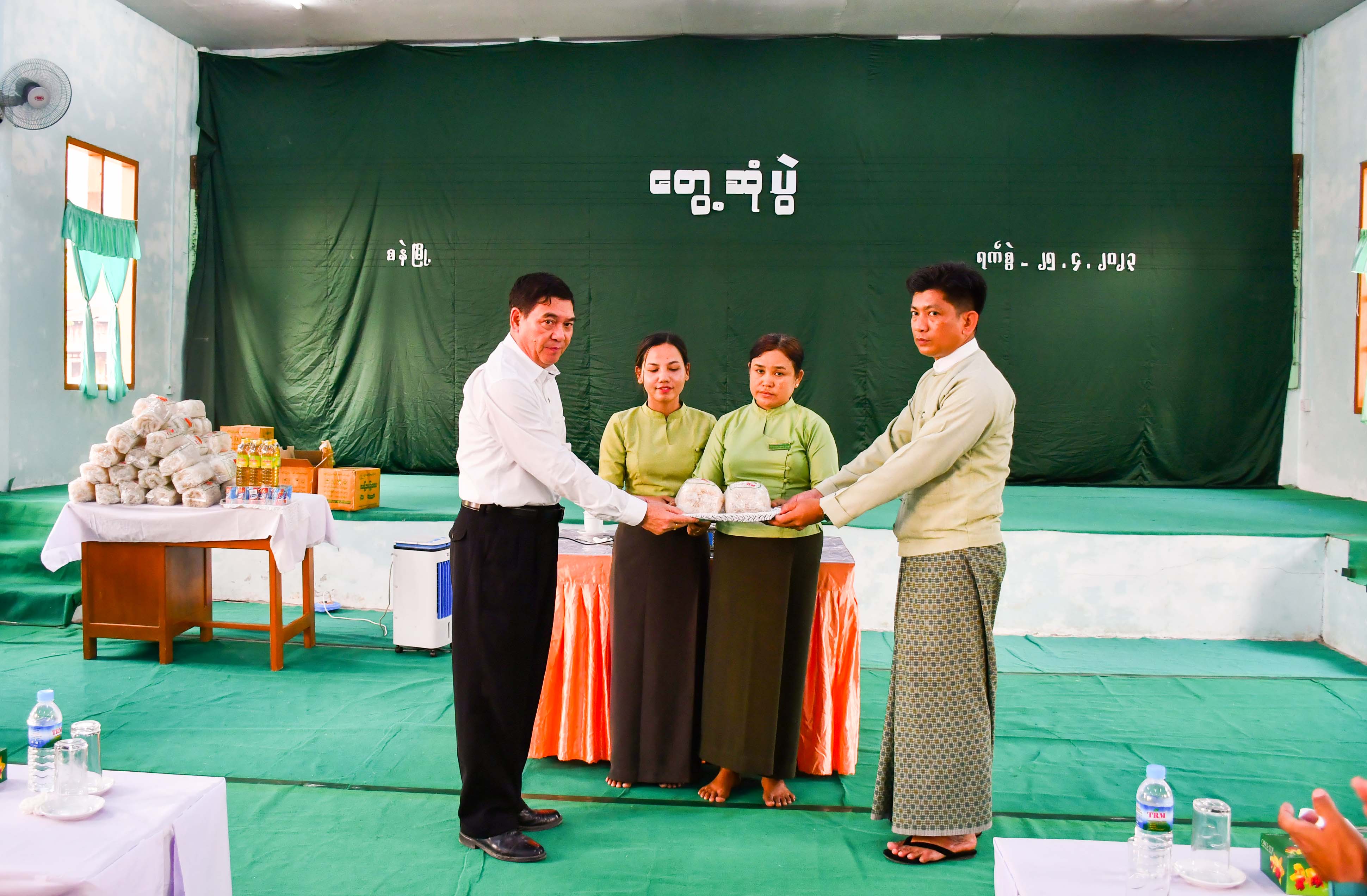 ဆက်လက်၍ ပြည်နယ်ဝန်ကြီးချုပ်က မိမိတို့ပြည်နယ်အစိုးရအဖွဲ့အနေဖြင့် ပြည်နယ်၏တည်ငြိမ် အေးချမ်းရေး၊ စားနပ်ရိက္ခာဖူလုံရေးအတွက် အဓိကထားဆောင်ရွက်နေကြောင်း၊ ဒေသဖွံ့ဖြိုးတိုးတက်ရေးကို အလေးထား လုပ်ဆောင်နိုင်ရန်အတွက် ဒေသတည်ငြိမ်ရေး၊ တရားဥပဒေစိုးမိုးရေးကို ယခင်ကထက်ပိုမိုပြီး ဦးစားပေး ဆောင်ရွက်ကြရမည်ဖြစ်ကြောင်း၊ တည်ငြိမ်အေးချမ်းမှုရရှိ လာသည်နှင့်အမျှ ဖွံ့ဖြိုးတိုးတက်မှုများ ရရှိလာမည်ဖြစ်ပြီး ဖွံ့ဖြိုးတိုးတက်လာသည်နှင့်အမျှ ပြည်နယ်အတွင်းတည်ငြိမ်အေးချမ်းမှုကို ပိုမိုရရှိစေမည်ဖြစ်ကြောင်း၊ ဒေသတည်ငြိမ်အေးချမ်းရေးအတွက် ဒေသခံများပူးပေါင်းပါဝင်ရန် လိုအပ်မည်ဖြစ်ကြောင်း၊ ပြည်သူများ ပူးပေါင်းပါဝင်ဆောင်ရွက်မှ ပြီးပြည့်စုံသည့် လုံခြုံမှုစနစ်တစ်ခုကို ရရှိနိုင်မည်ဖြစ်ကြောင်း၊ တည်ငြိမ်ရေးနှင့် တရားဥပဒေစိုးမိုးရေးကို တစ်ဘက်က ဆောင်ရွက်ယင်း ဒေသဖွံ့ဖြိုးရေးလုပ်ငန်းများကို ပူးပေါင်းဆောင်ရွက်သွားကြရမည် ဖြစ်ကြောင်း၊ ရမ်းဗြဲမြို့နယ်သည် စိုက်ပျိုးရေး၊ မွေးမြူရေးအားကောင်းသော မြို့နယ်တစ်ခုဖြစ်ကြောင်း၊ စိုက်ပျိုးရေးလုပ်ငန်းများတွင် ယခင်ကထက် ပိုမိုအထွက်နှုန်းကောင်းမွန်နိုင်ရန်အတွက် မျိုးကောင်း၊ မျိုးသန့်များ ဖြန့်ဖြူးပေးပြီး စိုက်ပျိုးရေး ဦးစီးဌာနနှင့် သက်ဆိုင်ရာ တာဝန်ရှိသူများက တောင်သူများကို စည်းရုံးကာ စိုက်ပျိုးကြရန်လိုကြောင်း၊ မြို့နယ်အတွင်း စံပြစိုက်ကွက်များ စိုက်ပျိုးပြသရမည်ဖြစ်ကြောင်း၊ အလားတူ မွေးမြူရေးလုပ်ငန်းများကိုလည်း တိုးချဲ့လုပ်ကိုင်ကြရန်လိုကြောင်း၊ မြို့နယ်အတွင်း စိုက်ပျိုးရေးနှင့် မွေးမြူရေးကို အခြေခံသည့် ထုတ်ကုန်တစ်ခုထုတ်လုပ်နိုင်ရန် ကြိုးစားဆောင်ရွက်ကြစေလိုကြောင်း၊ ထို့အတူ ပညာရေး၊ ကျန်းမာရေးကဏ္ဍများတွင် ဌာနဆိုင်ရာများ၊ မြို့မိ၊ မြို့ဖများက ပူးပေါင်းပါဝင် လုပ်ကိုင်ကြရမည် ဖြစ်ကြောင်းနှင့် ရမ်းဗြဲမြို့နယ် ဖွံ့ဖြိုးတိုးတက်ရေးအတွက် ဌာနဆိုင်ရာများ၊ မြို့မိ၊ မြို့ဖများနှင့်ဒေသခံ ပြည်သူများအားလုံးက စည်းစည်းလုံးလုံးဖြင့် ပူးပေါင်းဆောင်ရွက်ကြစေလိုကြောင်း ပြောကြားသည်။ ယင်းနောက် ပြည်နယ်ဝန်ကြီးချုပ်က လက်ဆောင်ပစ္စည်းများပေးအပ်ရာ တာဝန်ရှိသူများက လက်ခံရယူကြသည်။