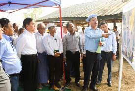 ရခိုင်ပြည်နယ်ဝန်ကြီးချုပ် ဦးထိန်လင်းသည် ပြည်နယ်ဝန်ကြီးများ၊ ပြည်နယ်အဆင့်ဌာနဆိုင်ရာ တာဝန်ရှိသူများနှင့်အတူ ဧပြီ ၂၅ ရက် နံနက်ပိုင်းက ကျောက်ဖြူခရိုင်၊ ရမ်းဗြဲမြို့နယ်နှင့် စနဲမြို့ ဒေသဖွံ့ဖြိုးရေးလုပ်ငန်းများအား ကွင်းဆင်းကြည့်ရှုစစ်ဆေးပြီး ဌာနဆိုင်ရာများ၊ မြို့မိ၊ မြို့ဖများနှင့်တွေ့ဆုံသည်။