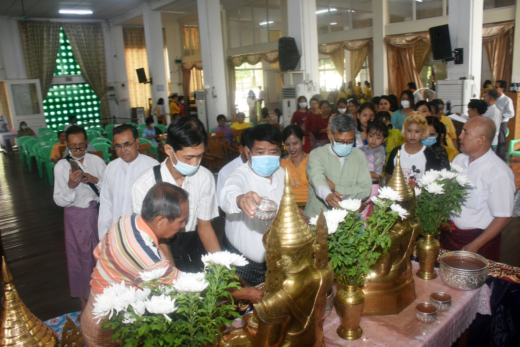 ယင်းနောက် ရခိုင်ရိုးရာ နံ့သာသွေးပွဲနှင့် ဘုရားရေသပ္ပာယ်ပွဲတော် ကျင်းပရေး ကော်မတီနာယကများနှင့် ရခိုင်စာပေနှင့် ယဉ်ကျေးမှုအဖွဲ့ (ရန်ကုန်) ရခိုင်မြို့နယ်အသင်းများနှင့် ရခိုင်လူမှုရေး အသင်းအဖွဲ့များက ဗုဒ္ဓရုပ်ပွားတော်များအား အမွှေးနံ့သာရည်ဖြင့် ရေသပ္ပာယ်ကြသည်။