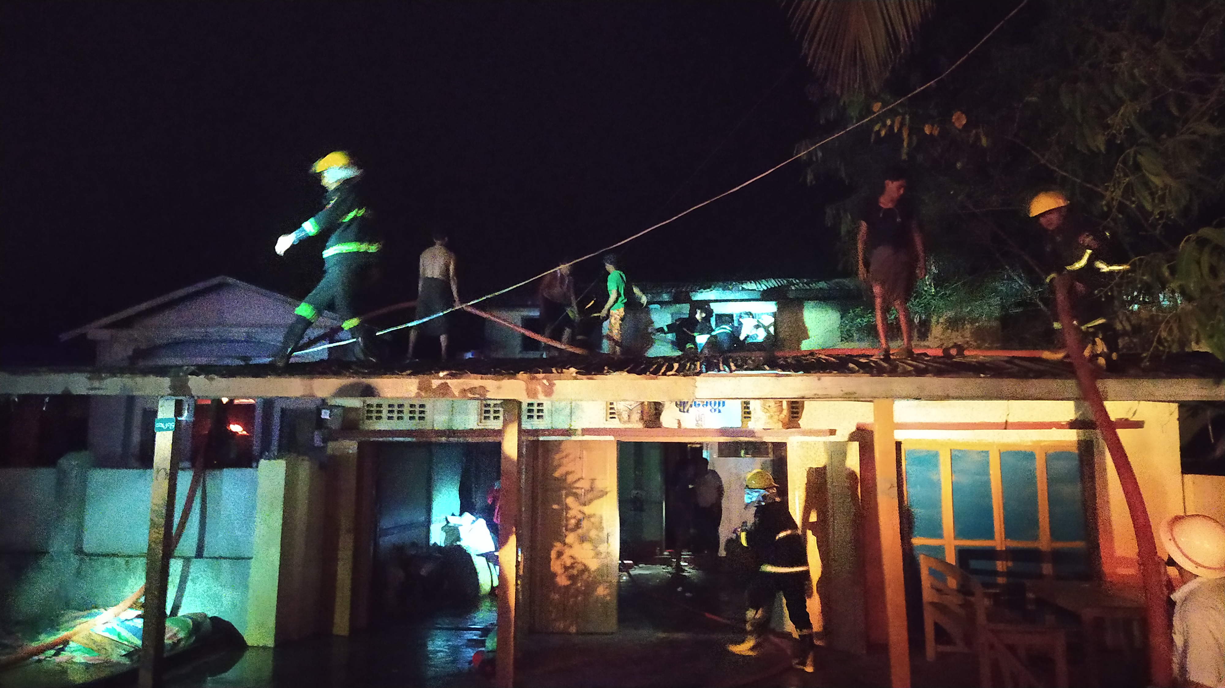 မီးလောင်မှုဖြစ်ပွားရာသို့ မြို့နယ်အထွေထွေအုပ်ချုပ်ရေးဦးစီးဌာန၊ မြို့နယ်ရဲတပ်ဖွဲ့၊ ခရိုင်မီးသတ်နှင့် မြို့နယ်မီးသတ်တို့မှ တာဝန်ရှိသူများ၊ မီးသတ်တပ်ဖွဲ့ဝင်များ၊ အရန်မီးသတ်ဖွဲ့ဝင်များနှင့် ပြည်သူများ စုပေါင်းပြီး မီးသတ်ယာဉ် သုံးစီး၊ ရေသယ်ယာဉ်တစ်စီးတို့ဖြင့် ငြှိမ်းသတ်ခဲ့ရာ ည ၉ နာရီ ၅ မိနစ်တွင် မီးငြိမ်းသွားခဲ့သည်။ မီးလောင်မှုကြောင့် ဒေါ်တင်တင်မိုး၏ ပွဲရုံ နှစ်ထပ်တိုက်မှ မျက်နှာကြက်၊ အခင်းပျဉ်များ၊ တိုင်များ၊ ထုပ်တန်းများ မီးလောင်ခဲ့ပြီး လူနှင့် တိရစ္ဆာန် ထိခိုက်သေဆုံးမှု မရှိကြောင်း သိရသည်။