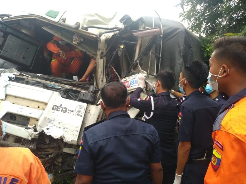 ယာဉ်တိုက်မှုကြောင့် ကားခေါင်းခန်းအတွင်း ညပ်နေသူ ယာဉ်မောင်း အမျိုးသားတစ်ဦးသေဆုံးခဲ့ပြီး ယာဉ်နောက်လိုက် အမျိုးသားတစ်ဦးမှာ ထိခိုက်ဒဏ်ရာ (မစိုးရိမ်ရ)ရှိသဖြင့် အလင်းရောင် ပရဟိတ လူမှုကူညီရေးအသင်းမှ သူနာတင်ယာဉ်ဖြင့် ရမည်းသင်းမြို့နယ် ပြည်သူ့ဆေးရုံသို့ ပို့ဆောင်ပေးခဲ့ကြောင်း မြန်မာနိုင်ငံမီးသတ်တပ်ဖွဲ့ဦးစီးဌာနမှ သိရသည်။