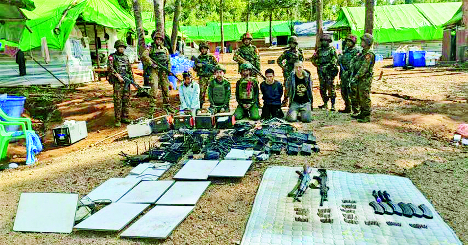 လုံခြုံရေးတပ်ဖွဲ့ဝင်များအနေဖြင့် အဆိုပါနေရာအနီးတစ်ဝိုက်သို့ နံနက် ၉ နာရီခွဲခန့်တွင် ရောက်ရှိစစ်ဆေးစဉ် မိုးကာတဲအစုအဖွဲ့များအတွင်းရှိ လက်နက်ကိုင်နှစ်ဦးမှ လုံခြုံရေးတပ်ဖွဲ့ဝင်များအား စတင်ပစ်ခတ်ခဲ့သဖြင့် လုံခြုံရေးတပ်ဖွဲ့ဝင်များက ပြန်လည်ပစ်ခတ်ခဲ့ရသည်။ ပစ်ခတ်မှုများရပ်တန့်သွားချိန်တွင် လုံခြုံရေးတပ်ဖွဲ့ဝင်များက အဆိုပါနေရာအား ဝင်ရောက်ရှင်းလင်းခဲ့ရာ SSPP/SSA တပ်ဖွဲ့ဝင် သုံးဦးအား AK-47 တစ်လက်၊ M-22 တစ်လက်၊ MK-12 တစ်လက်၊ ပွိုင့်-၂၂ တစ်လက်တို့နှင့်အတူ ဖမ်းဆီးရမိခဲ့သည်။ ယင်းနောက် အဆိုပါနေရာအား ဆက်လက်စစ်ဆေးခဲ့ရာ အွန်လိုင်းလိမ်လည်လောင်းကစားမှုများ လုပ်ကိုင်နေသူများဖြစ်သည့် တရုတ်နိုင်ငံသား အမျိုးသား ငါးဦး၊ မြန်မာနိုင်ငံသား အမျိုးသမီးတစ်ဦးတို့နှင့်အတူ ၎င်းတို့နေထိုင်အသုံးပြုလျက်ရှိသော မိုးကာတဲကြီး ၁၇ လုံးနှင့် ကင်းတဲငယ်များ၊ All in one ကွန်ပျူတာ ခြောက်လုံး၊ လက်တော့ အလုံး ၇၀၊ ဖုန်းမျိုးစုံ အလုံး၁၆၀၊ IPad ၁၀ လုံး၊ Router ၁၀ လုံး၊ Modern Stick ၃၇ ခု၊ မီးစက် သုံးလုံး၊ STAR LINK ဗန်း ၁၉ ခု၊ 4 X 4 WHEEL နှစ်စီး၊ သရီးကရောင်း တစ်စီး၊ ဆက်စပ်ပစ္စည်းများကို တွေ့ရှိသိမ်းဆည်းရမိခဲ့သည်။