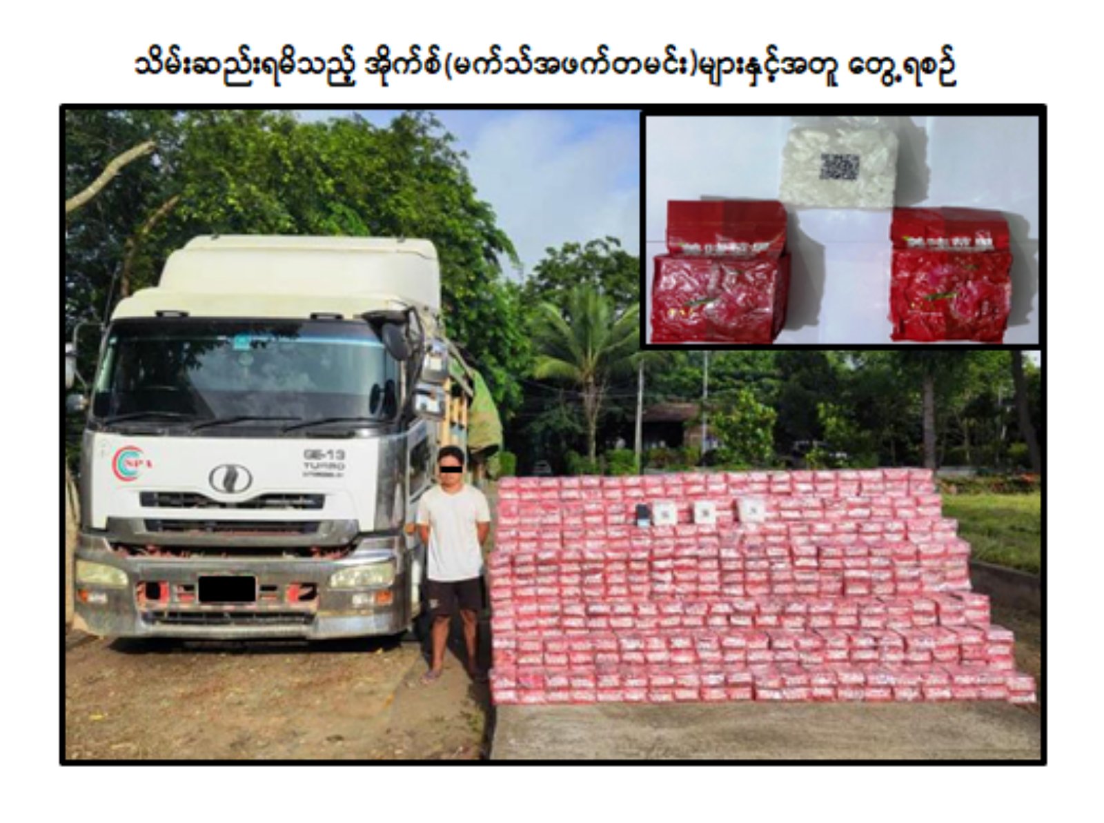 ရှမ်းပြည်နယ်(အရှေ့ပိုင်း)၊ ကျိုင်းတုံမြို့နယ်တွင် ငွေကျပ် ၄ ဒသမ ၈ ဘီလီယံကျော်တန်ဖိုးရှိ အိုက်စ်(မက်သ်အဖက်တမင်း) ၆၀၃ ကီလို ဖမ်းဆီးရမိ
