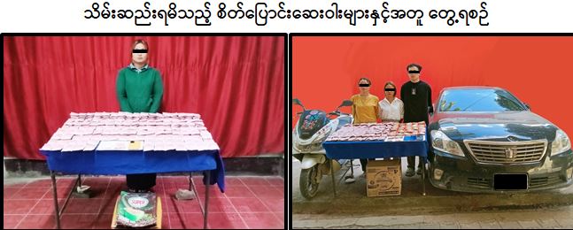 မူးယစ်ဆေးဝါးတားဆီးနှိမ်နင်းရေးရဲတပ်ဖွဲ့မှ တပ်ဖွဲ့ဝင်များပါဝင်သော ပူးပေါင်း အဖွဲ့သည် စက်တင်ဘာ ၇ ရက် ညနေ ၄ နာရီခွဲတွင် ရှမ်းပြည်နယ်(အရှေ့ပိုင်း)၊ တာချီလိတ် လေဆိပ်တွင် မဖြိုးကေသီကျော် မှ ရန်ကုန်သို့ တင်ပို့ရန် သယ်ဆောင်လာသည့် စက္ကူဂျပ်ဖာကို ရှာဖွေစစ်ဆေးရာ ဒေသကာလတန်ဖိုးငွေကျပ်သိန်း ၅,၈၅၀ တန်ဖိုးရှိ စိတ်ပြောင်းဆေးဝါး (Happy Water) ၇ ဒသမ ၈ ကီလို သိမ်းဆည်းရမိခဲ့ကြောင်း၊ အလားတူ ယင်းနေ့ ညနေ ၅ နာရီတွင် ပူးပေါင်းအဖွဲ့သည် သတင်းကွင်းဆက်အရ တာချီလိတ်မြို့၊ ဝိန်းကျောက်ရပ်ကွက် တွင် မမူမူကြူ(ခ) နန်းလောင်ငင် စိုင်းဝိလတ်၊ မမီညား တို့ (၃) ဉီးအား Toyota Crown မော်တော်ယာဉ်တစ်စီး၊ မော်တော်ဆိုင်ကယ်တစ်စီးနှင့်အတူ ဒေသကာလ တန်ဖိုးငွေကျပ် သိန်း ၉,၃၀၀ ကျော်တန်ဖိုးရှိ စိတ်ပြောင်းဆေးဝါး(Happy Water) ၈ ဒသမ ၅၂ ကီလို သိမ်းဆည်းရမိခဲ့သဖြင့် ၎င်းတို့အား ဥပဒေအရ အရေးယူထားရှိပြီး ကွင်းဆက်ပြစ်မှု ကျူးလွန်သူများအား ဆက်လက်ဖော်ထုတ်လျက်ရှိကြောင်း သိရသည်။