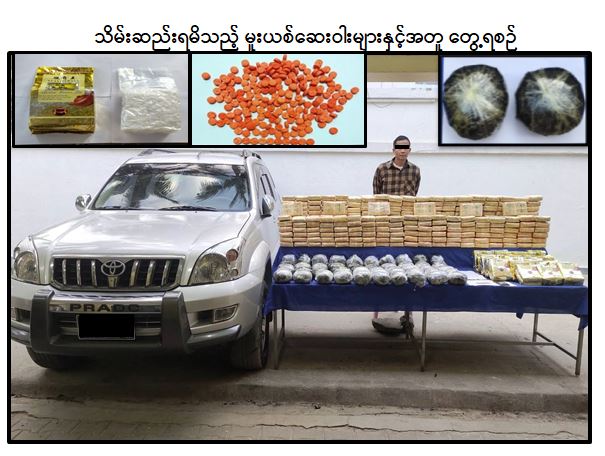 ရှမ်းပြည်နယ်(အရှေ့ပိုင်း)၊ တာချီလိတ်မြို့နယ်တွင် ငွေကျပ် ၁ ဘီလီယံကျော်တန်ဖိုးရှိ မူးယစ်ဆေးဝါးများ ဖမ်းဆီးရမိခဲ့ကြောင်း သိရသည်။