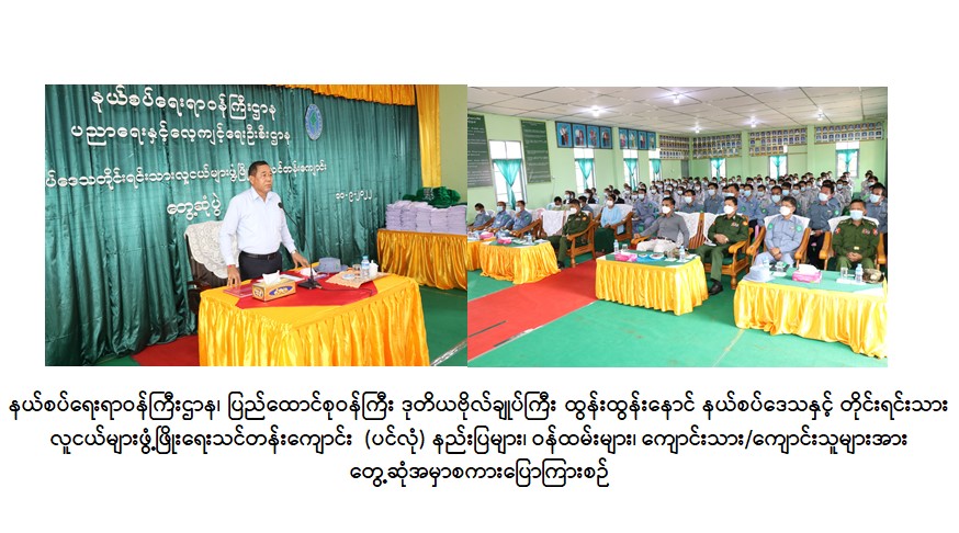 ဆက်လက်၍ ကျိုင်းတုံ - တောင်ကြီး လမ်းခွဲမှ ပန်မတ်ကျေးရွာအဝင်လမ်း ၁၃ မိုင်အနက် ၃ မိုင် ကျောက်လမ်း ပြုပြင်ထိန်းသိမ်းခြင်း လုပ်ငန်းခွင်ကိုလည်းကောင်း၊ မိုင်းပျဉ်းမြို့ရှိ ထေရဝါဒ ဗုဒ္ဓသာသနာပြု ဗဟိုကျောင်း ဘုန်းတော်ကြီးသင် အခြေခံပညာမူလတန်းကျောင်း၌ ပညာသင်ကြား လျက်ရှိသော ဒေသခံတိုင်းရင်းသား ကျောင်းသား၊ ကျောင်းသူများအတွက် ပေ ၁၀၀ x ၃၀ နှစ်ထပ်အိပ်ဆောင် ၁ လုံးနှင့် ၈ ခန်းတွဲ သန့်စင်ခန်း ဆောက်လုပ်ခြင်း လုပ်ငန်းခွင်များကို လည်းကောင်း၊ မိုင်းပျဉ်း - မိုင်းဆတ်လမ်းပေါ်တွင် တည်ဆောက်ထားသော စွန်တောင်းချောင်းကူး ပေ ၉၀ ဘေလီတံတား ရေတိုက်စားခြင်းကြောင့် ကမ်းကပ်ခုံနှင့် ရေလယ်တိုင် ပျက်စီးမှုကို ပြန်လည် ပြုပြင်ခြင်းနှင့် ခံနိုင်ဝန် မြှင့်တင်ခြင်းလုပ်ငန်း ဆောင်ရွက်ထားရှိမှုကိုလည်းကောင်း၊ မိုင်းပျဉ်းမြို့နယ်၊ ဟိုခိုကျေးရွာတွင် ဆောင်ရွက်ပြီးစီးခဲ့သည့် နမ့်ပိန်းချောင်းမှ ဆိုလာစနစ်ဖြင့် ချောင်းရေတင် စိုက်ပျိုးရေးလုပ်ငန်းဖြင့် သီးထပ်သီးညှပ်များ တိုးချဲ့စိုက်ပျိုးနိုင်မည့် အခြေအနေများကိုလည်းကောင်း ကြည့်ရှုစစ်ဆေးပြီး ဒေသခံတောင်သူများ၏ တင်ပြချက်များအပေါ် ညှိနှိုင်းဖြည့်ဆည်းဆောင်ရွက် ပေးသည်။