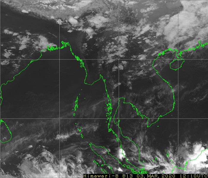 မိုးလေဝသနှင့်ဇလဗေဒညွှန်ကြားမှုဦးစီးဌာနမှ မတ် ၃ ရက် ည ၇ နာရီအချိန်တွင် နေ့စဉ်မိုးလေဝသသတင်းထုတ်ပြန်ရာ ဘင်္ဂလားပင်လယ်အော်အ‌ခြေအနေမှာ ကပ္ပလီပင်လယ်ပြင်နှင့် ဘင်္ဂလားပင်လယ်အော်တောင်ပိုင်းတို့တွင် တိမ်အသင့်အတင့် ဖြစ်ထွန်းနေပြီး၊ ကျန်ဘင်္ဂလားပင်လယ်အော်တွင် တိမ်အနည်းငယ် ဖြစ်ထွန်းနေပါသည်။