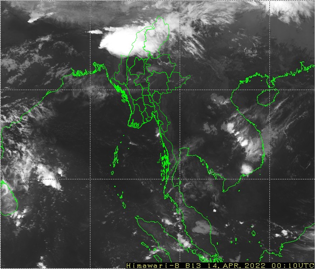 ယနေ့ညနေအထိ ခန့်မှန်းချက်အနေဖြင့် စစ်ကိုင်းတိုင်းဒေသကြီးအထက်ပိုင်းနှင့် ကချင်ပြည်နယ်တို့တွင် နေရာစိပ်စိပ်နှင့် စစ်ကိုင်းတိုင်းဒေသကြီးအောက်ပိုင်း၊ မန္တလေးတိုင်းဒေသကြီး၊ တနင်္သာရီတိုင်းဒေသကြီး၊ ရှမ်းပြည်နယ်နှင့်ချင်းပြည်နယ်တို့တွင် နေရာကွက်ကျားမိုးထစ်ချုန်းရွာမည်။ ရွာရန်ရာနှုန်း(၈၀) ဖြစ်သည်။ ပဲခူးတိုင်းဒေသကြီး၊ ရန်ကုန်တိုင်းဒေသကြီး၊ ဧရာဝတီတိုင်းဒေသကြီးနှင့် ကယားပြည်နယ်တို့တွင် အများအားဖြင့် သာယာပြီး၊ ကျန်တိုင်းဒေသကြီးနှင့် ပြည်နယ်တို့တွင် တိမ်အသင့်အတင့် ဖြစ်ထွန်းမည်။