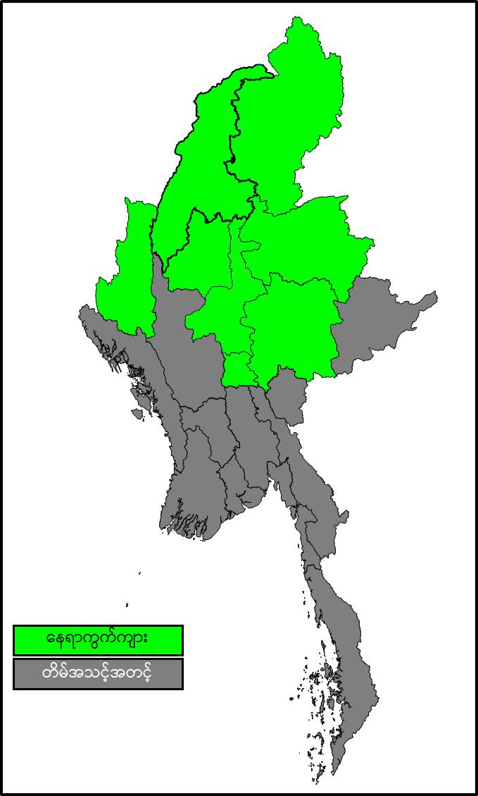 မနက်ဖြန်နံနက်အထိခန့်မှန်းချက်။ နေပြည်တော်၊ စစ်ကိုင်းတိုင်းဒေသကြီး၊ မန္တလေးတိုင်းဒေသကြီး၊ ကချင်ပြည်နယ်၊ ရှမ်းပြည်နယ်(မြောက်ပိုင်းနှင့် တောင်ပိုင်း)နှင့် ချင်းပြည်နယ်တို့တွင် နေရာကွက်ကျား မိုးရွာမည်။ ရွာရန်ရာနှုန်း ၈၀ ဖြစ်ပါသည်။ ကျန်တိုင်းဒေသကြီးနှင့် ပြည်နယ်တို့တွင် တိမ်အသင့်အတင့် ဖြစ်ထွန်းမည်။
