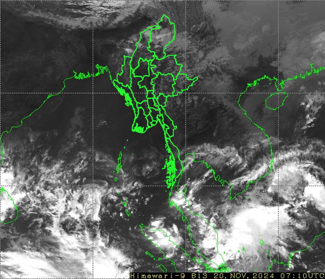 ယမန်နေ့နံနက်(၀၉:၃၀)နာရီအချိန်မှ ယနေ့နံနက်(၀၉:၃၀)နာရီအချိန်အထိ မိုးလေဝသ တိုင်းထွာချက်အကျဉ်းချုပ်။ လွန်ခဲ့သော(၂၄)နာရီအတွင်းက မန္တလေးတိုင်းဒေသကြီး၊ ဧရာဝတီတိုင်းဒေသကြီးနှင့် ရှမ်းပြည်နယ်(မြောက်ပိုင်းနှင့် တောင်ပိုင်း)တို့တွင် နေရာကွက်ကျား မိုးရွာခဲ့ပြီး၊ ကျန်တိုင်းဒေသကြီးနှင့် ပြည်နယ်တို့တွင် တိမ်အသင့်အတင့် ဖြစ်ထွန်းခဲ့ပါသည်။ ညအပူချိန်များမှာ ကချင်ပြည်နယ်တွင် နိုဝင်ဘာလ၏ ပျမ်းမျှအပူချိန်အောက် ၃ ဒီဂရီဆဲလ်စီးယပ် လျော့နည်းခဲ့ပြီး၊ စစ်ကိုင်းတိုင်းဒေသကြီးအောက်ပိုင်း၊ မန္တလေးတိုင်းဒေသကြီးနှင့် ရှမ်းပြည်နယ်(မြောက်ပိုင်းနှင့် တောင်ပိုင်း)တို့တွင် နိုဝင်ဘာလ၏ ပျမ်းမျှအပူချိန်တို့ထက် ၂ ဒီဂရီဆဲလ်စီးယပ်ပိုခဲ့ကာ၊ ကျန်တိုင်းဒေသကြီးနှင့် ပြည်နယ်တို့တွင် နိုဝင်ဘာလ၏ ပျမ်းမျှအပူချိန်ခန့်သာ ရှိခဲ့ပါသည်။ ထူးခြားသည့် ညအပူချိန်များမှာ ဟားခါးမြို့တွင် ၆.၇ ဒီဂရီဆဲလ်စီးယပ်၊ ပူတာအိုမြို့တွင် ၉.၂ ဒီဂရီဆဲလ်စီးယပ်၊ တီးတိန်မြို့တွင် ၉.၅ ဒီဂရီဆဲလ်စီးယပ်၊ နမ့်စန်မြို့(ရှမ်းပြည်နယ်တောင်ပိုင်း)တွင် ၁၀.၁ ဒီဂရီဆဲလ်စီးယပ်နှင့် ပြင်ဦးလွင်မြို့တွင် ၁၀.၃ ဒီဂရီဆဲလ်စီးယပ်တို့ ဖြစ်ကြပါသည်။ မှတ်သားဖွယ်ရာ မိုးရေချိန်များမှာ ပြင်ဦးလွင်မြို့တွင် ၀.၇၉ လက်မ၊ ဖျာပုံမြို့တွင် ၀.၁၂ လက်မနှင့် ကျောက်ဆည်(လွန်ကျော်)တွင် ၀.၀၈ လက်မတို့ ဖြစ်ကြပါသည်။