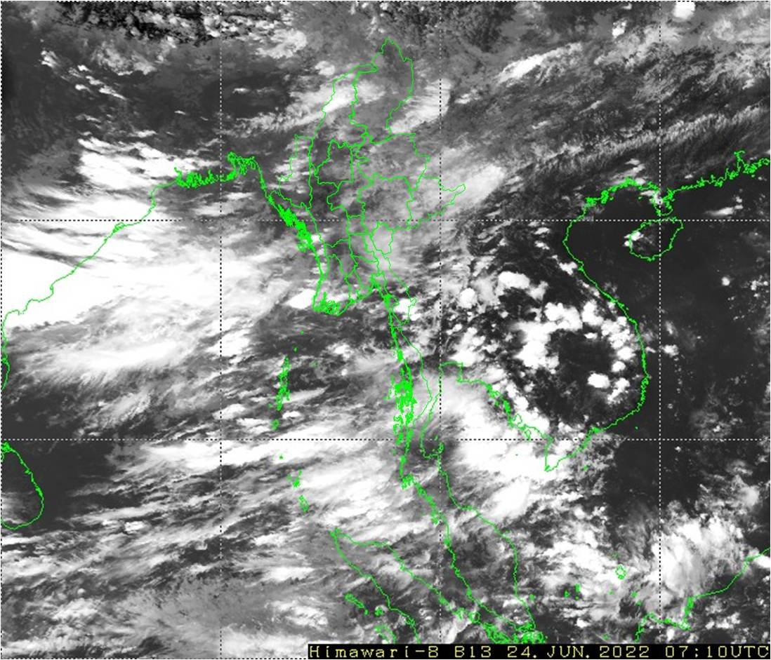 ယနေ့နံနက်(၀၉:၃၀)နာရီအချိန်ထိ မိုးလေဝသတိုင်းထွာချက်အကျဉ်းချုပ်မှာ လွန်ခဲ့သော(၂၄)နာရီ အတွင်းက စစ်ကိုင်းတိုင်းဒေသကြီးအောက်ပိုင်းတွင် နေရာကွက်ကျား၊ မန္တလေးတိုင်းဒေသကြီး၊ မကွေးတိုင်းဒေသကြီး၊ ရှမ်းပြည်နယ်(တောင်ပိုင်း)၊ ကရင်ပြည်နယ်နှင့် မွန်ပြည်နယ်တို့တွင် နေရာကျဲကျဲ၊ စစ်ကိုင်းတိုင်းဒေသကြီးအထက်ပိုင်းနှင့် ကယားပြည်နယ်တို့တွင် နေရာစိပ်စိပ်နှင့် ကျန်တိုင်းဒေသကြီးနှင့်ပြည်နယ်တို့တွင် နေရာအနှံ့အပြားမိုးထစ်ချုန်းရွာခဲ့ပြီး စစ်ကိုင်းတိုင်းဒေသကြီး အထက်ပိုင်း၊ ဧရာဝတီတိုင်းဒေသကြီး၊ ကချင်ပြည်နယ်၊ ရခိုင်ပြည်နယ်နှင့် ကရင်ပြည်နယ်တို့တွင် နေရာကွက်၍ မိုးကြီးခဲ့သည်။