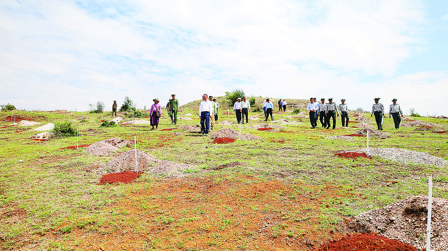 ထို့နောက် စိုက်ခင်းတည်ထောင်ရန် မြေကျင်းတူး၊ မြေဩဇာထည့် ကျင်းဖို့ခြင်းလုပ်ငန်းများ ဆောင်ရွက်ပြီးစီးပြီး မိုးရာသီတွင် သစ်ပင်စတင်စိုက်ပျိုးနိုင်ရန် အသင့်အနေအထားဖြင့် ဆောင်ရွက် ထားရှိမှုအခြေအနေများကို လှည့်လည်ကြည့်ရှုစစ်ဆေးရာ တာဝန်ရှိသူများက စိုက်ကွက်များအတွင်း သစ်မျိုးအလိုက် စိုက်ပျိုးမည့်အစီအမံများနှင့်စပ်လျဉ်း၍ ရှင်းလင်းတင်ပြသည်။