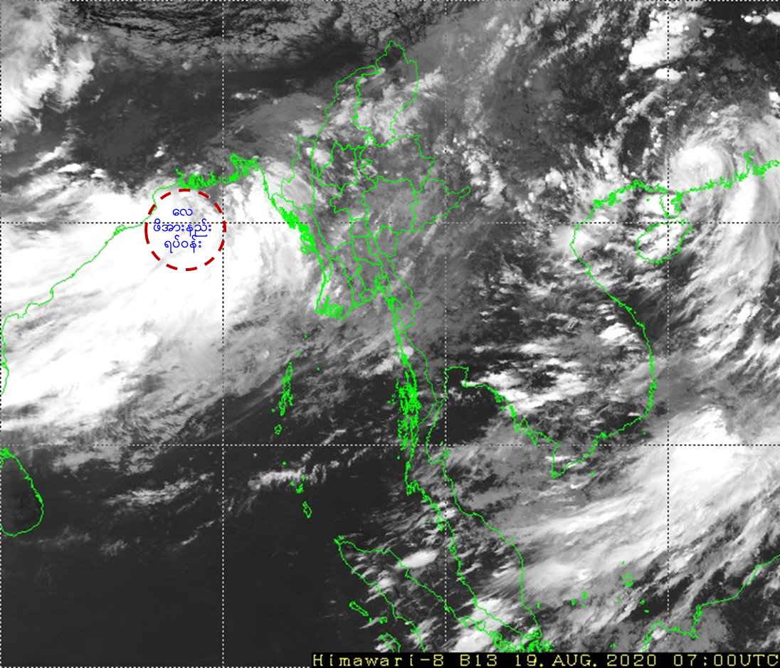 ဘင်္ဂလားပင်လယ်အော်အခြေအနေ။ ယနေ့မြန်မာစံတော်ချိန် (၁၃:၃၀) နာရီအချိန် တိုင်းထွာချက်များအရ ဘင်္ဂလားပင်လယ်အော်မြောက်ပိုင်းတွင် ဖြစ်ပေါ်ခဲ့သော လေဖိအားနည်း ရပ်ဝန်းသည် ဘင်္ဂလားပင်လယ် အော်အနောက်မြောက်ပိုင်းတွင် ဆက်လက်တည်ရှိနေပါသည်။ အဆိုပါ လေဖိအားနည်းရပ်ဝန်းသည် နောက်(၂၄)နာရီအတွင်း မုန်တိုင်းငယ် (Depression)အဖြစ်သို့ ပိုမိုအားကောင်းလာကာ၊ အနောက်ဘက်သို့ ရွေ့လျားနိုင်သည်ဟု ခန့်မှန်းရပါသည်။ ကပ္ပလီပင်လယ်ပြင်နှင့် ဘင်္ဂလားပင်လယ်အော်အရှေ့တောင်ပိုင်းတို့တွင် မုတ်သုံလေ အားနည်းနေပြီး၊ ကျန်ဘင်္ဂလားပင်လယ်အော်တွင် မုတ်သုံလေ အားကောင်းနေပါသည်။