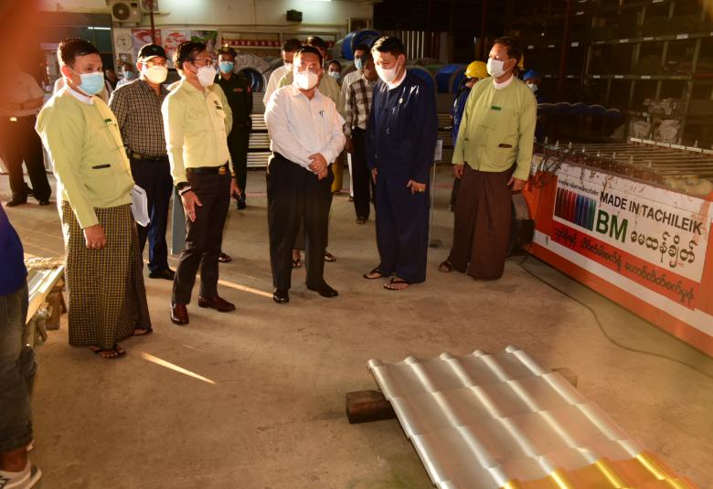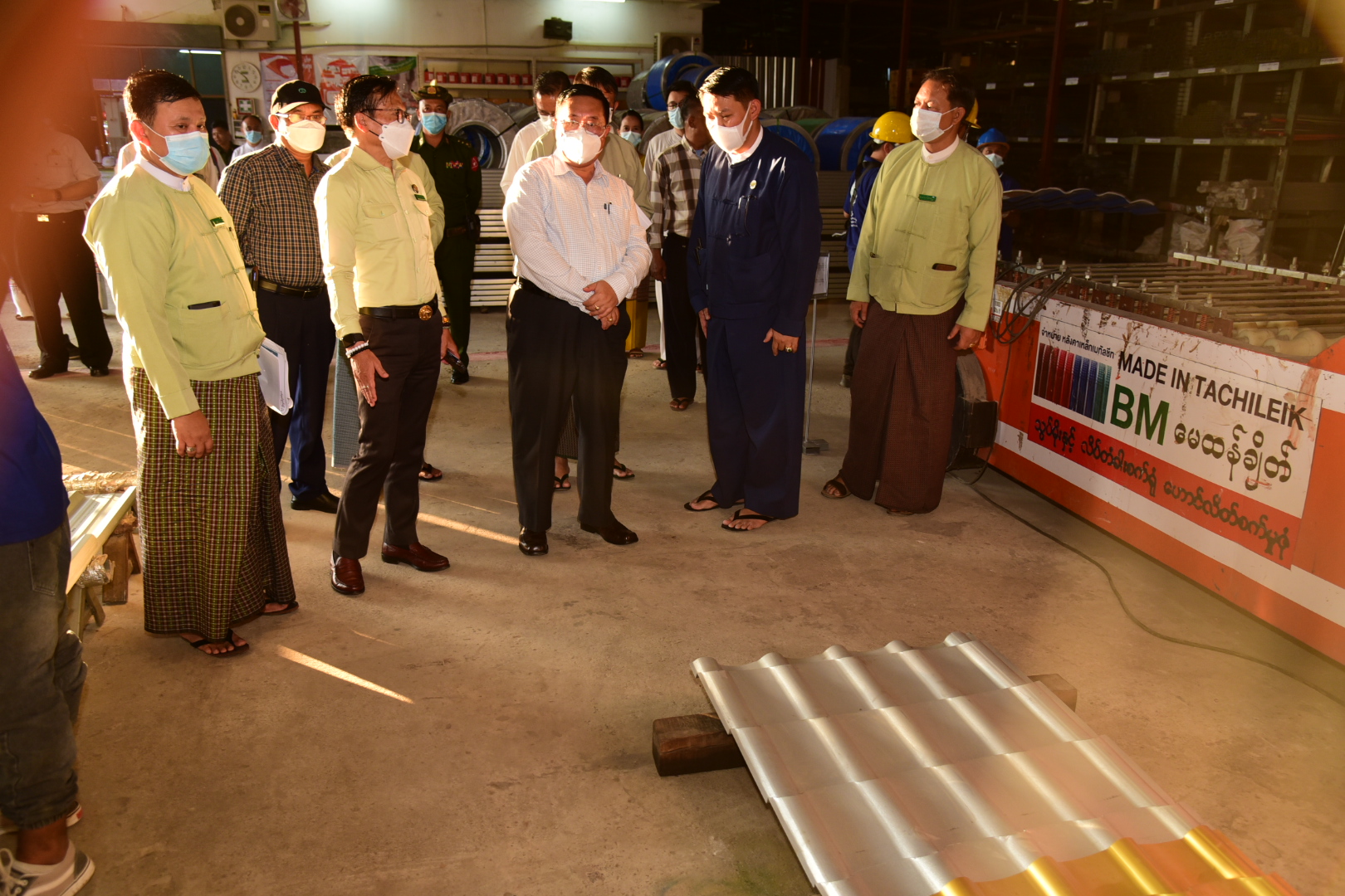 ဆက်လက်၍ ပြည်နယ်ဝန်ကြီးချုပ်နှင့် တာဝန်ရှိသူများသည် တာချီလိတ်မြို့ ဆေခမ်းရပ်ကွက်ရှိ မေထန်ချိတ် သွပ်ပြားစက်ရုံသို့ သွားရောက်ကြည့်ရှုခဲ့ပြီး စက်ရုံတာဝန်ရှိသူတစ်ဦးမှ သွပ်ပြားထုတ်လုပ်နေမှု အဆင့်ဆင့်ကို ရှင်းလင်းတင်ပြခဲ့ကြောင်း သိရသည်။
