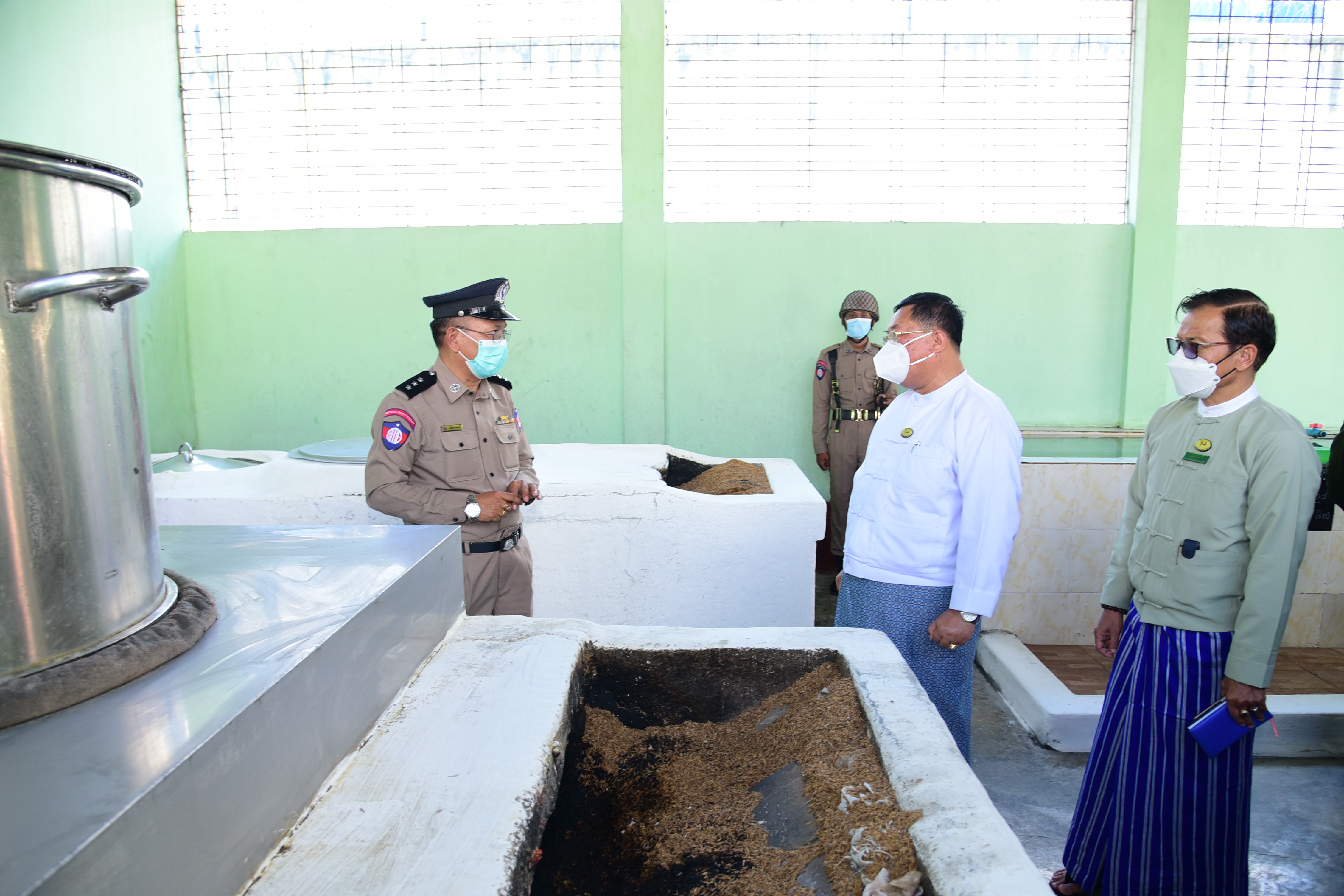 ယင်းနောက် ပြည်နယ်ဝန်ကြီးချုပ်နှင့်အဖွဲ့သည် တောင်ကြီး အကျဉ်းထောင်ရှိ အမျိုးသားအဆောင်(၁)၊ အဆောင်(၂)၊ စားဖိုကြီး ထမင်းချက်ဆောင်၊ ထမင်းစားဆောင်၊ စာကြည့်တိုက်၊ ကျန်းမာရေးစောင့်ရှောက်ပေးမှုနှင့် အင်္ကျီနေလှန်းမည့်နေရာ၊ အမျိုးသမီးအဆောင်များအား လှည့်လည်ကြည့်ရှုစစ်ဆေးပြီး ကလေးငယ်နှင့် ကိုယ်ဝန်ဆောင်အမျိုးသမီး (၂)ဦးအား စားစရာများ ထောက်ပံ့ပေးအပ်ခဲ့ကြောင်း သိရှိရသည်။