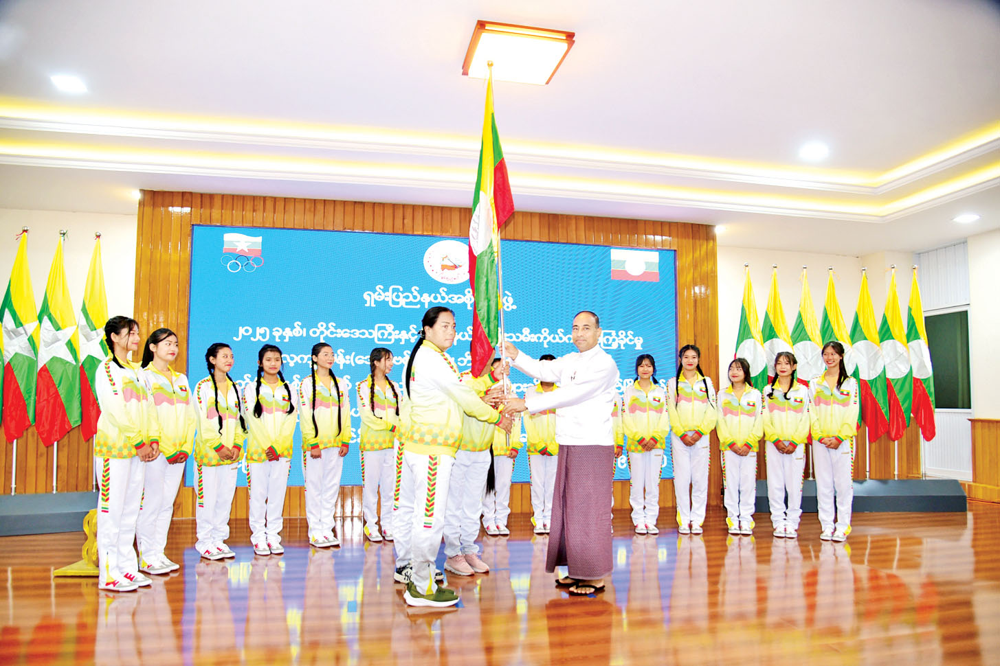 ၂၀၂၅ ခုနှစ် တိုင်းဒေသကြီးနှင့် ပြည်နယ် အမျိုးသမီး ကိုယ်ကာယကြံ့ခိုင်မှုလေ့ကျင့်ခန်း (အေရိုးဗစ်)ပြိုင်ပွဲ၊ ဘိလိယက်/စနူကာပြိုင်ပွဲနှင့် အသက်(၂၅)နှစ်အောက် အမျိုးသမီးဘောလုံးပြိုင်ပွဲများသို့ ဝင်ရောက်ယှဉ်ပြိုင်မည့် ရှမ်းပြည်နယ်ကိုယ်စားပြု လက်ရွေးစင်အသင်းများအား အောင်နိုင်ရေးအလံပေးအပ်ပွဲကို ယနေ့နံနက် ၈ နာရီခွဲတွင် တောင်ကြီးမြို့ ရှမ်းပြည်နယ် အစိုးရအဖွဲ့ရုံး အစည်းအဝေးခန်းမ၌ ကျင်းပသည်။