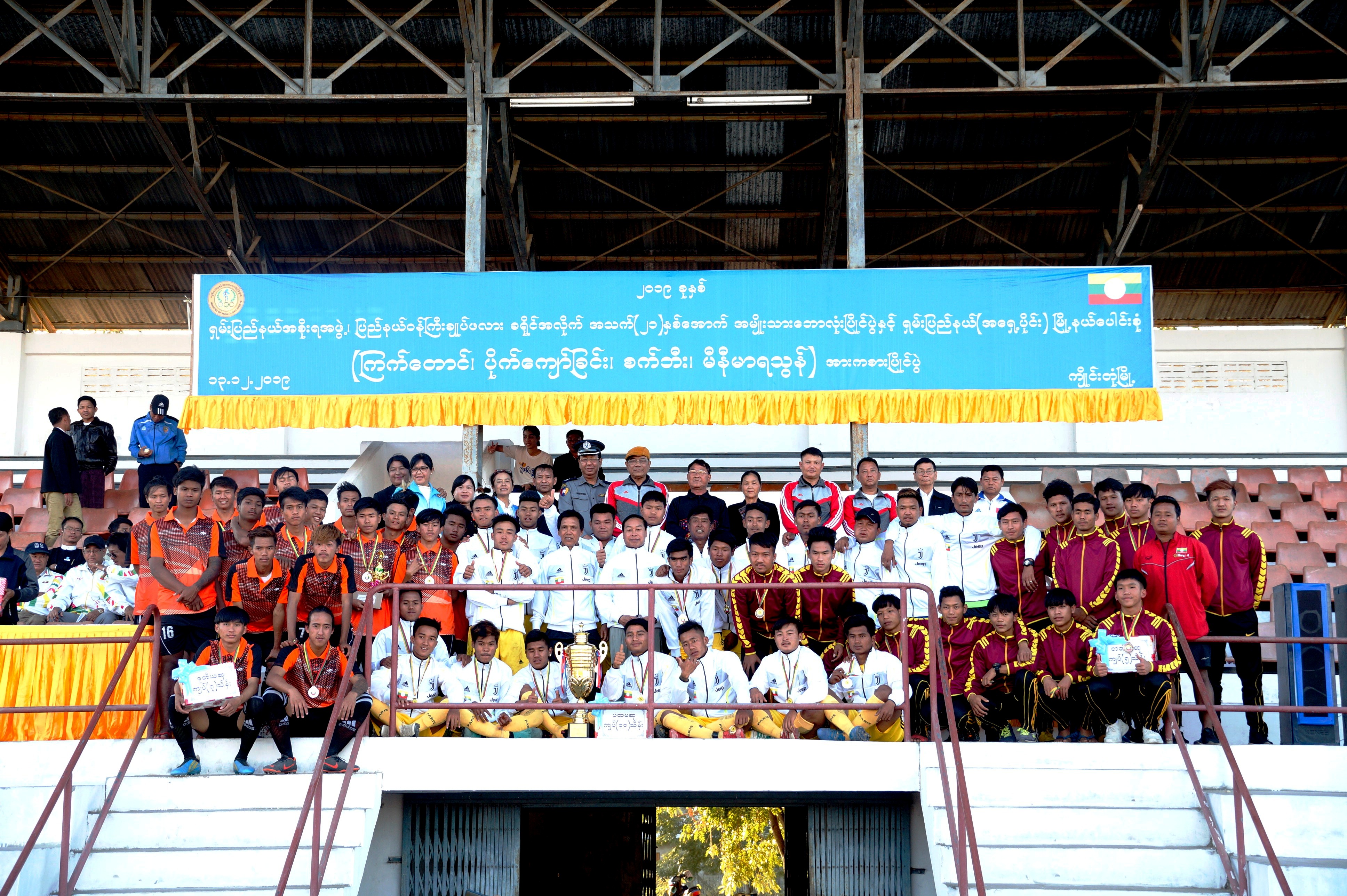 ရှမ်းပြည်နယ်အစိုးရအဖွဲ့ ပြည်နယ်ဝန်ကြီးချုပ်ဖလား ခရိုင်အလိုက် အမျိုးသား အသက် ၂၁ နှစ်အောက် ဘောလုံးပြိုင်ပွဲ ဗိုလ်လုပွဲနှင့် ဆုချီးမြှင့်ပွဲကို ယမန်နေ့ မွန်းလွဲ ၂ နာရီက ကျိုင်းတုံမြို့ ပြည်နယ်အားကစားကွင်း၌ ကျင်းပသည်။