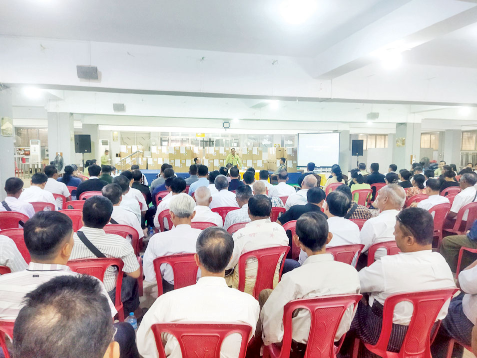 အစည်းအဝေးတွင် သင်္ဃန်းကျွန်းခရိုင် ပါတီစုံဒီမိုကရေစီ အထွေထွေ ရွေးကောက်ပွဲကာလ လုံခြုံရေးဆိုင်ရာ ကြီးကြပ်မှု ကော်မတီဥက္ကဋ္ဌ ဦးဇော်မိုးထိုက် က အမှာစကား ပြောကြားသည်။