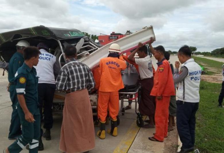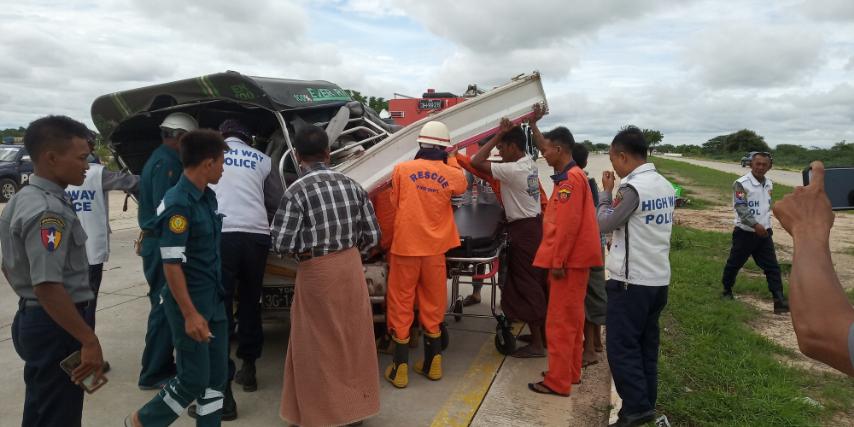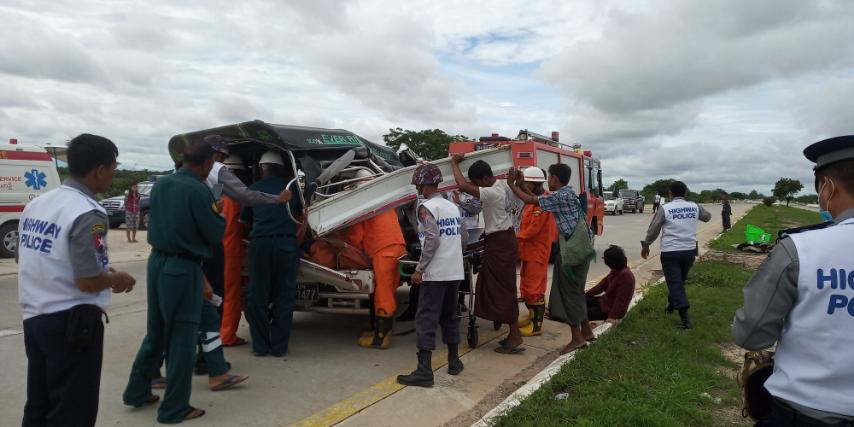 ရန်ကုန်-မန္တလေးအမြန်လမ်းမကြီး၊ မိုင်တိုင်အမှတ် (၃၂၈/၆) နှင့် (၃၂၈/၇)ကြားတွင် ယနေ့နံနက် ၉ နာရီ ၁၄ မိနစ်က ယာဉ်တိုက်မှုဖြစ်ပွားကြောင်း သတင်းရရှိသဖြင့် ပြင်စည်အမြန်လမ်းမီးသတ်စခန်းမှ သန္ဓေမီးသတ်တပ်ဖွဲ့ဝင်များ၊ စကားအင်းအမြန်လမ်းမကြီးရဲစခန်းမှ တပ်ဖွဲ့ဝင်များဖြင့် သွားရောက်ကူညီ ဆောင်ရွက်ခဲ့ရာ ယာဉ်ပေါ်ပါ အမျိုးသား(၁)ဦး၊ အမျိုးသမီး(၂)ဦး စုစုပေါင်း (၃)ဦးအနက် ထိခိုက်ဒဏ်ရာ ရရှိသူ အမျိုးသမီး(၂)ဦး တံတားဦးဆေးရုံသို့ ပို့ဆောင်ပေးခဲ့ကြောင်း မီးသတ်ဦးစီးဌာနမှ သိရသည်။
