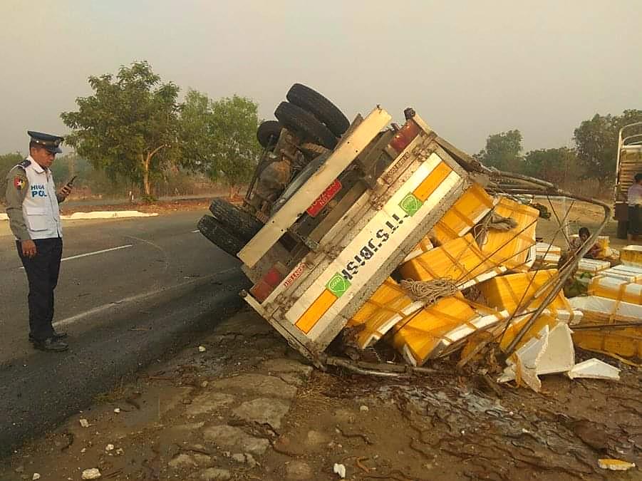 ရန်ကုန်-မန္တလေးအမြန်လမ်းပိုင်း မိုင်တိုင် ၁၉၄/၂ နှင့် ၃ အကြားတွင် မတ် ၁၃ ရက်နေ့ နံနက်ပိုင်းက ကုန်များ တင်ဆောင်ထားသည့် မစ်ဆူဘီရှီ ၆ ဘီး ကုန်တင်ယာဉ်တစ်စီး တိမ်းမှောက်ခဲ့ကြောင်း သိရသည်။