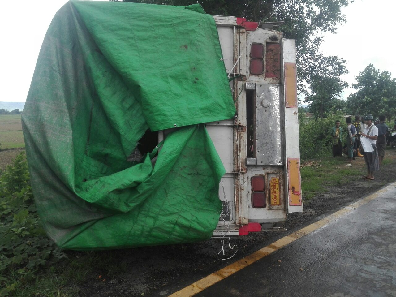 ဖြစ်စဉ်မှာ မန္တလေးဘက်မှ ရန်ကုန်ဘက်သို့ ယာဉ်မောင်း ရန်အောင်နိုင် (၃၃)နှစ် ဂနက်ကျေးရွာ၊ ကျောက်တံခါး မြို့နယ်နေသူ မောင်းနှင်လာသော ယာဉ်အမှတ် 4K/----- NISSAN အမျိုးအစား ခြောက်ဘီးယာဉ်သည် အရှိန်မထိန်းနိုင်ဘဲ လမ်း၏ယာဘက်ခြမ်းသို့ တိမ်းမှောက်ခဲ့ခြင်း ဖြစ်သည်။