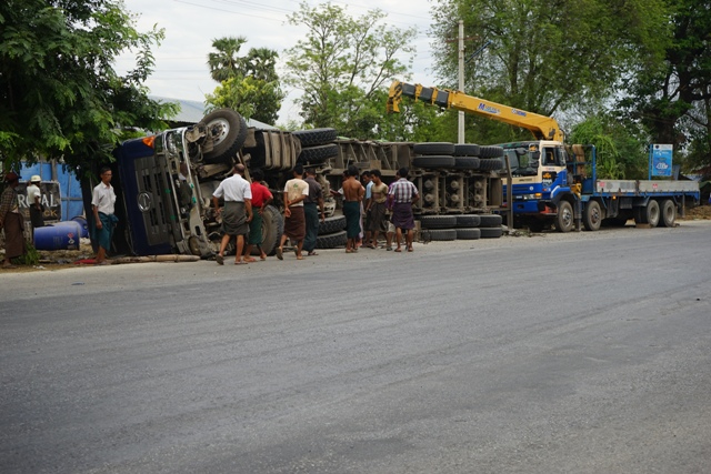 မန္တလေးတိုင်းဒေသကြီး၊ ကျောက်ဆည်မြို့ ပြည်ပန်းကျေးရွာအနီး၊ ရန်ကုန်-မန္တလေး ကားလမ်းဟောင်းကွေ့တွင် ယနေ့ နံနက် ၁၁ နာရီခွဲခန့်က ယာဉ်မောင်း ဆန်းထိုက်အောင် မောင်းနှင်ပြီး ကုန်များတင်ဆောင်လာသည့် ကုန်တင်ယာဉ်တစ်စီး တိမ်းမှောက်ခဲ့ကြောင်း သိရှိရသည်။