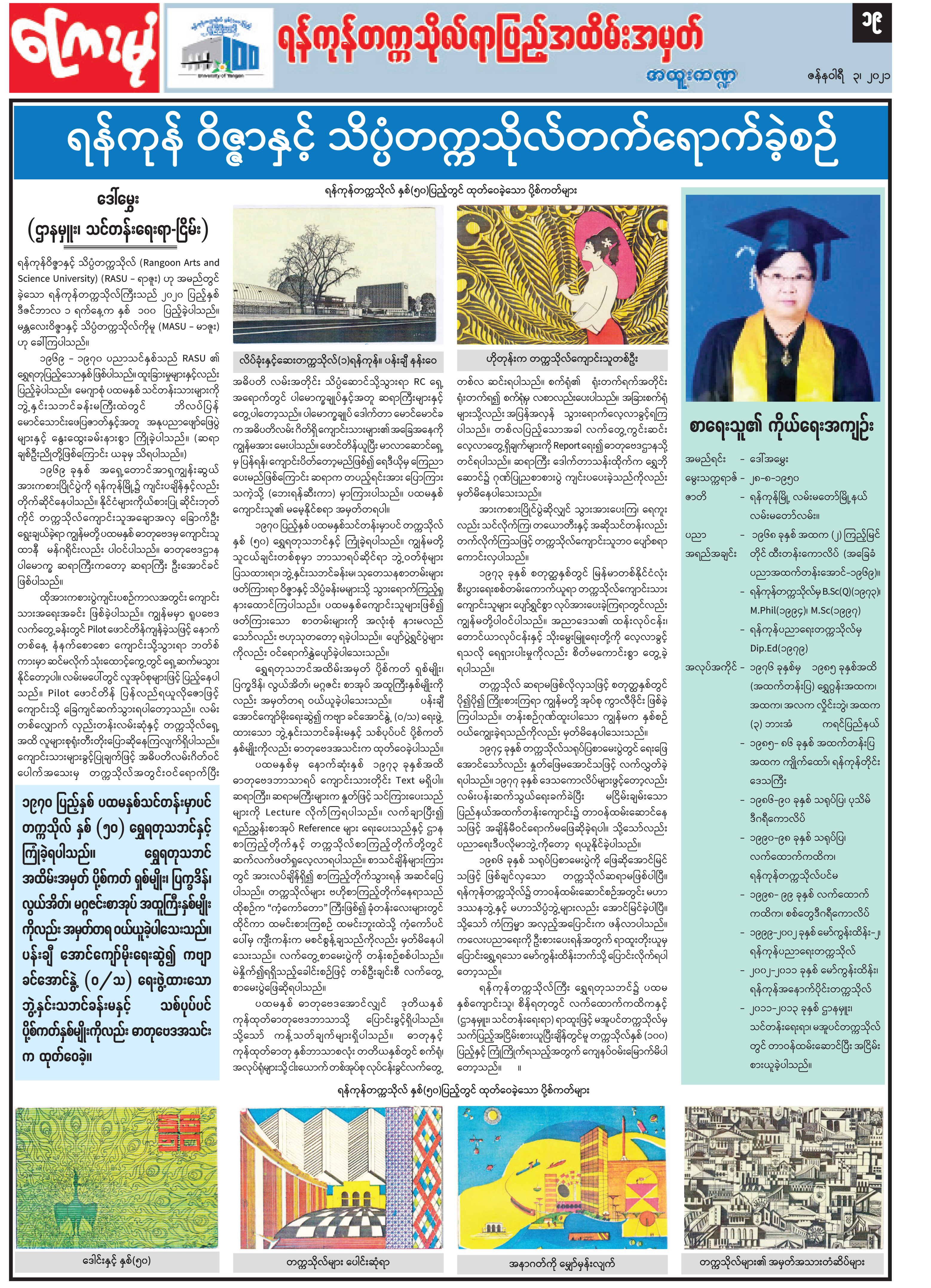 ရန်ကုန် ဝိဇ္ဇာနှင့် သိပ္ပံတက္ကသိုလ်တက်ရောက်ခဲ့စဉ်