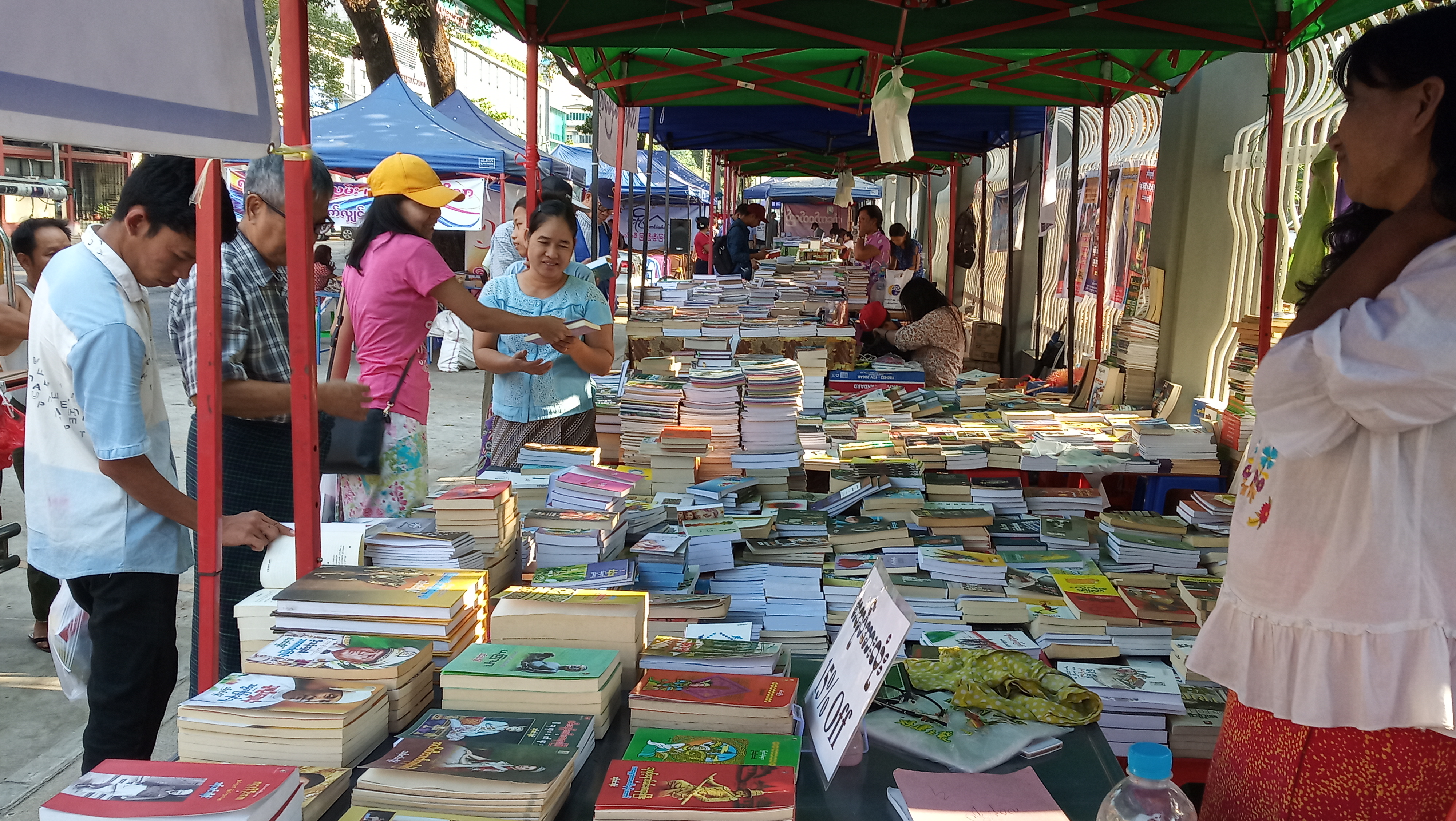 ရက်သတ္တပတ် (၉) ပတ်၏ စနေနှင့် တနဂငေ်္နွနေ့များတွင် ဖွင့်လှစ်ရောင်းချခဲ့ပြီး စာအုပ်တိုက်များမှ စာဖတ်စွမ်းရည် မြှင့်တင်ရေးအနေဖြင့် စာပေပဟေဠိ အမေးအဖြေပွဲများကို ပြုလုပ်ပေးကာ အဖြေမှန်သူများကို တန်ဖိုးကြီးစာအုပ် လက်ဆောင်အဖြစ် ချီးမြှင့်လျက်ရှိသည်။