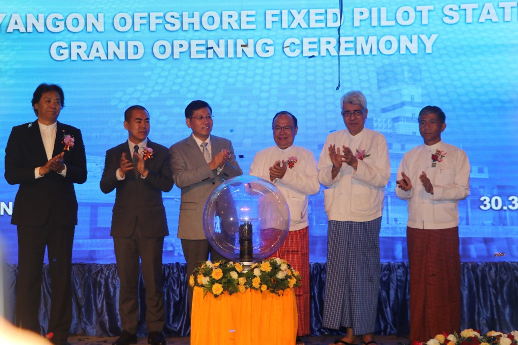 ရန်ကုန်မြစ်ဝမှ ရေမိုင် (၂၀) ခန့်ကွာဝေးသည့် ကမ်းလွန်ပင်လယ်ပြင် အခြေစိုက် ရေကြောင်းပြ အဆောက်အအုံ (Offshore Fixed Pilot Station) ဖွင့်လှစ်ခြင်းနှင့် လွှဲပြောင်းလက်ခံခြင်း အခမ်းအနားကို ယနေ့တွင် ရန်ကုန်မြို့ ဆူးလေရှမ်ဂရီလာ ဟိုတယ်၌ ကျင်းပသည်။